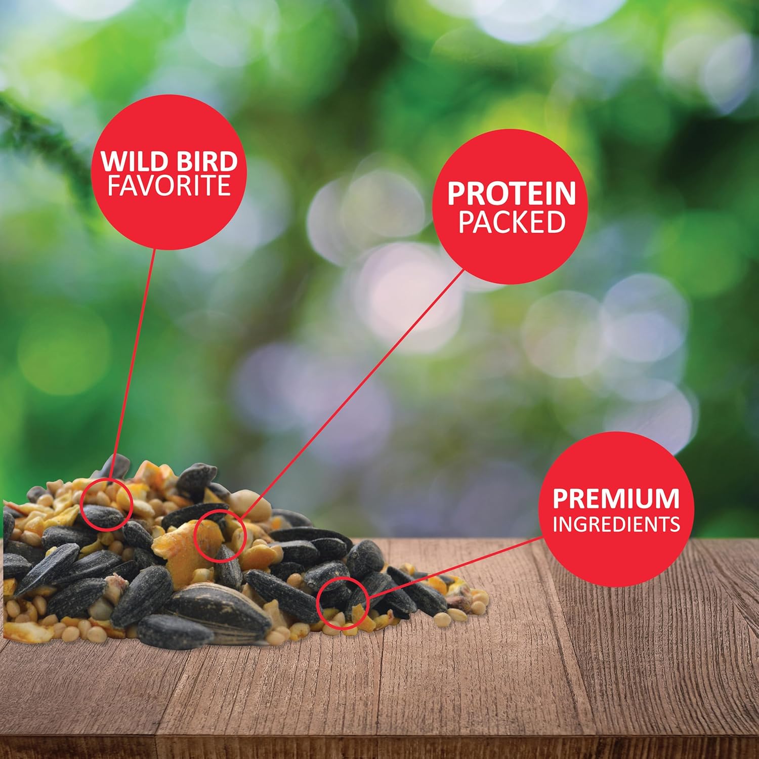 - All-natural bird feed with no fillers