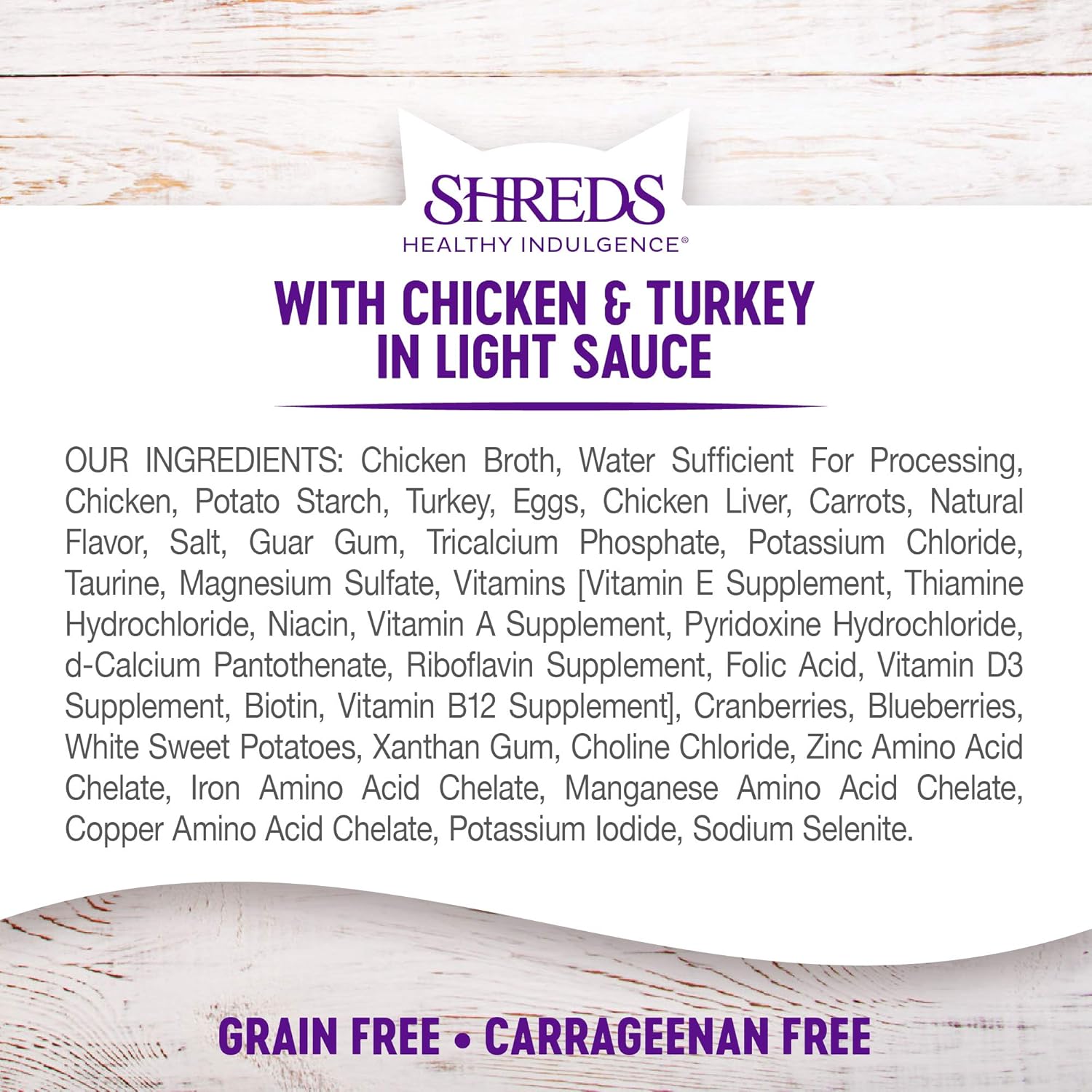 Wellness Healthly Indulgence Shreds Adult Wet Cat Food, Natural, Protein-Rich, Grain Free, 3 Ounce Pouch, 24 Pack, (Chicken & Turkey)