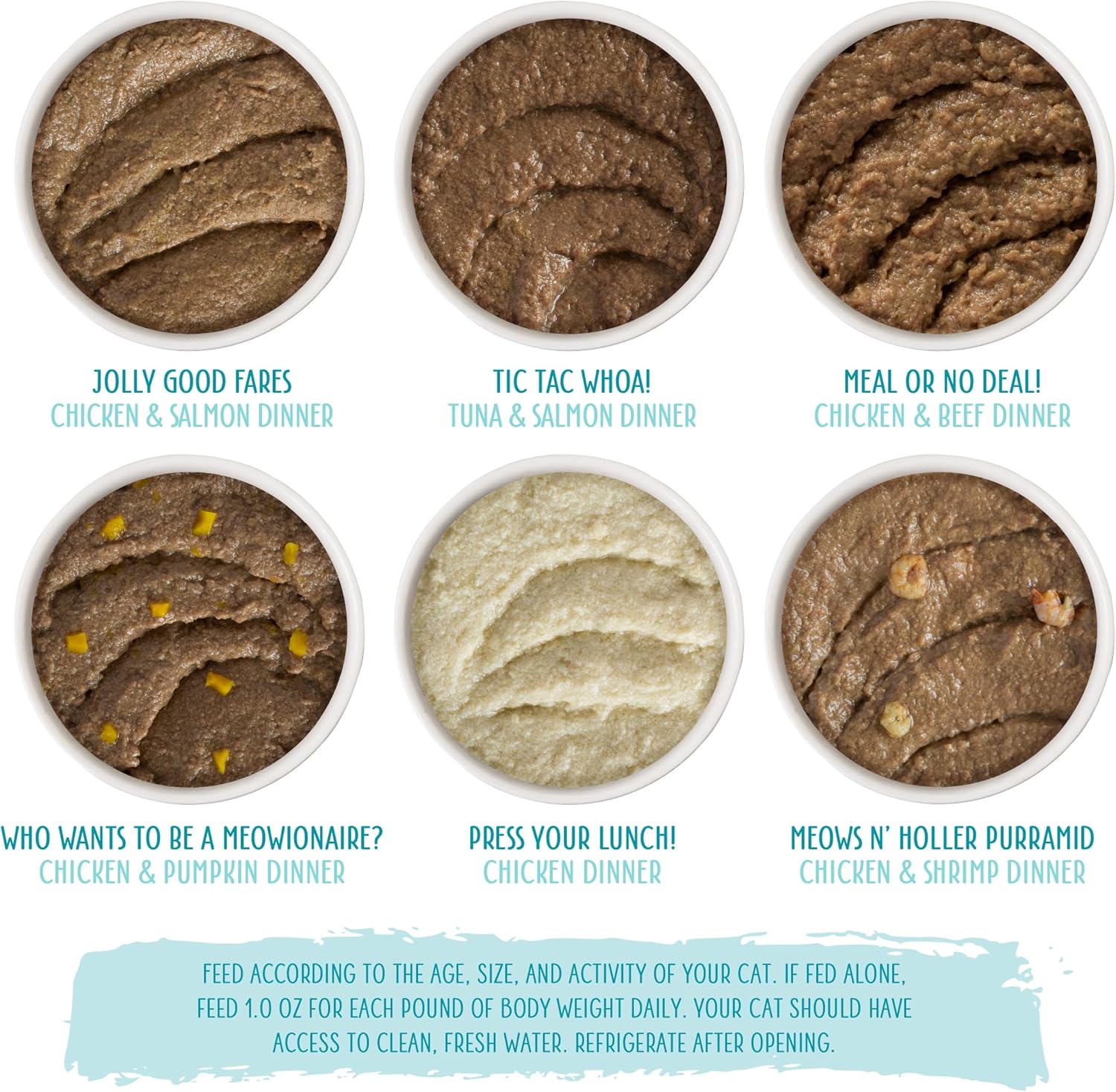 - The Mix and Match Game Variety Pack. Pick a new pate, everyday. Includes all six Weruva canned pate cat food recipes, three of each