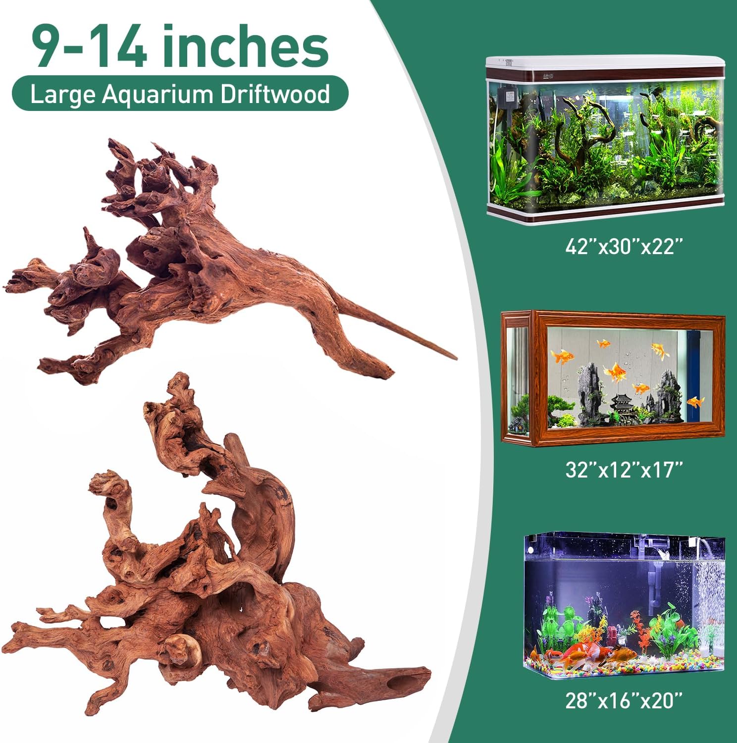 WDEFUN Natural Driftwood for Aquarium Decor, 2-Piece 10''-14'' Large Driftwood for Decorations on Fish Tank, Reptiles Bearded Dragon Accessories or Air Plants
