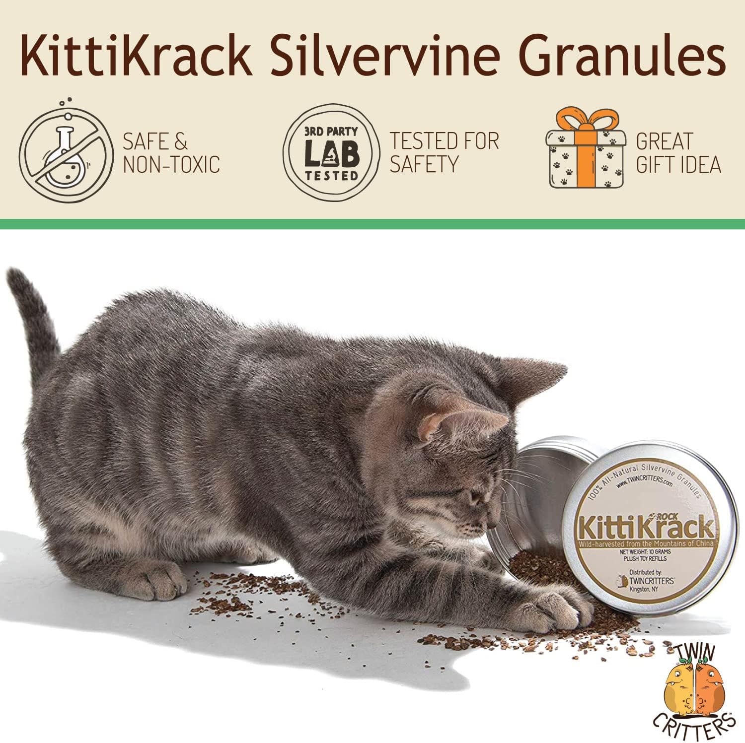 - Caring for your Cat: The continued good health of your fur-baby is our top priority here at TWINCRITTERS. This is why weβve made our KittiKrack Rock Cat Toy Refill Granules from pure wild growing silvervine fruit without any additives or preservatives.