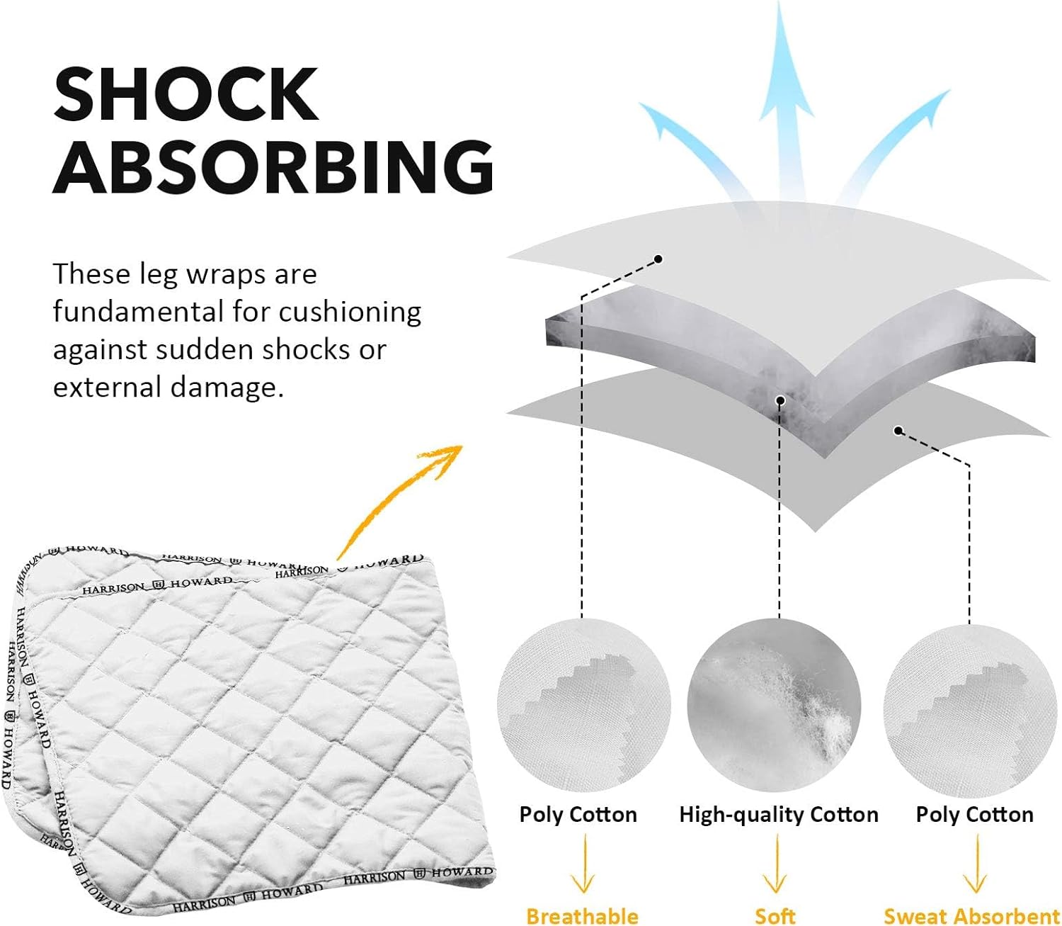 Harrison Howard Medicine-Retaining Shock-Absorbing Pressure Sores Prevention Quilted Leg Wraps for Horse Set of 4-White L