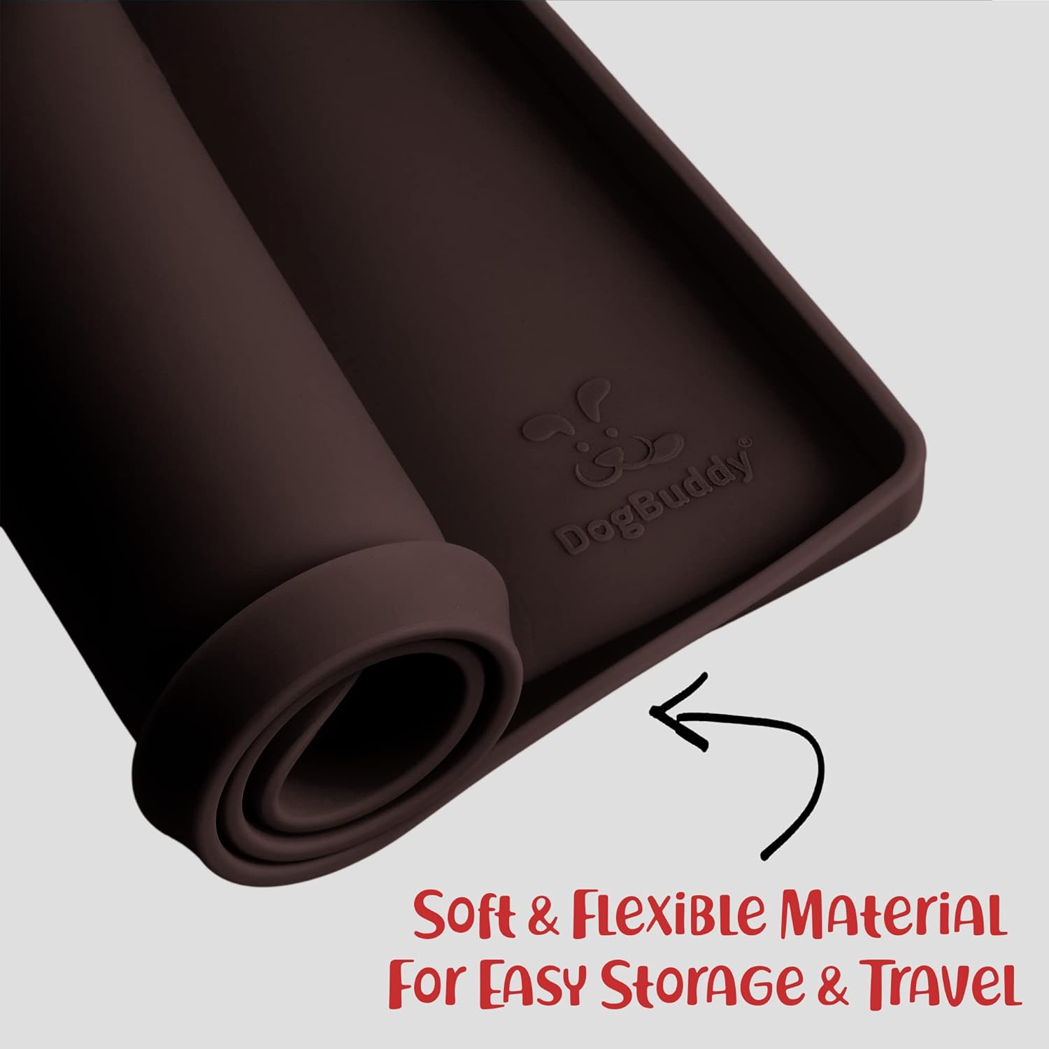 DogBuddy Dog Food Mat – Waterproof Dog Bowl Mat for Food and Water, Silicone Pet Feeding Mats for Floors, Non-Slip Placemat with High Edges for Dogs Bowls, Puppy Essentials (S: 19" x 12", Coffee)