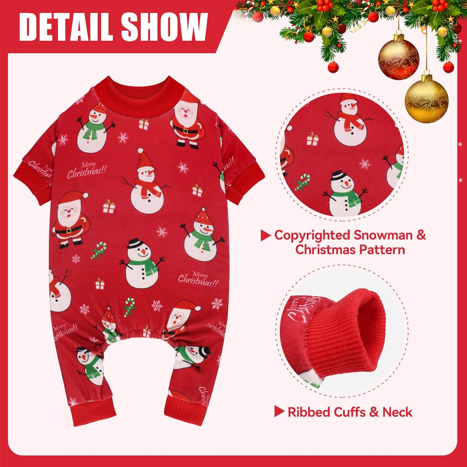 - ★Comfy & Stretchy Fabric--These dog christmas pajamas are made of 85% cotton and 15% spandex. Soft breathable skin-friendly material with durable stitching, comfortable to wear, ideal christmas PJS. Light weight and silky, it's not see-through, washes easy, and provides ultimate comfort for all day wear.
