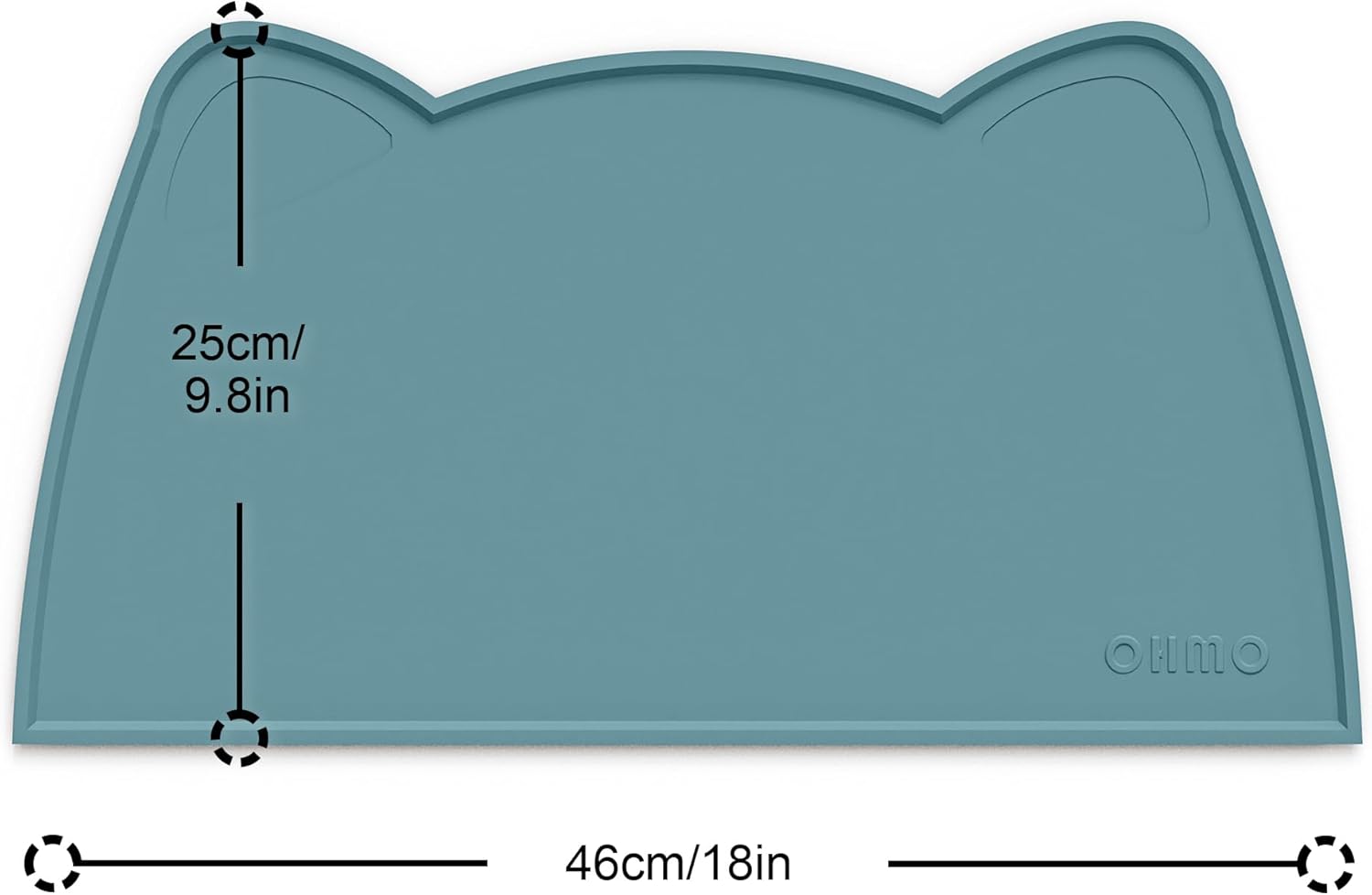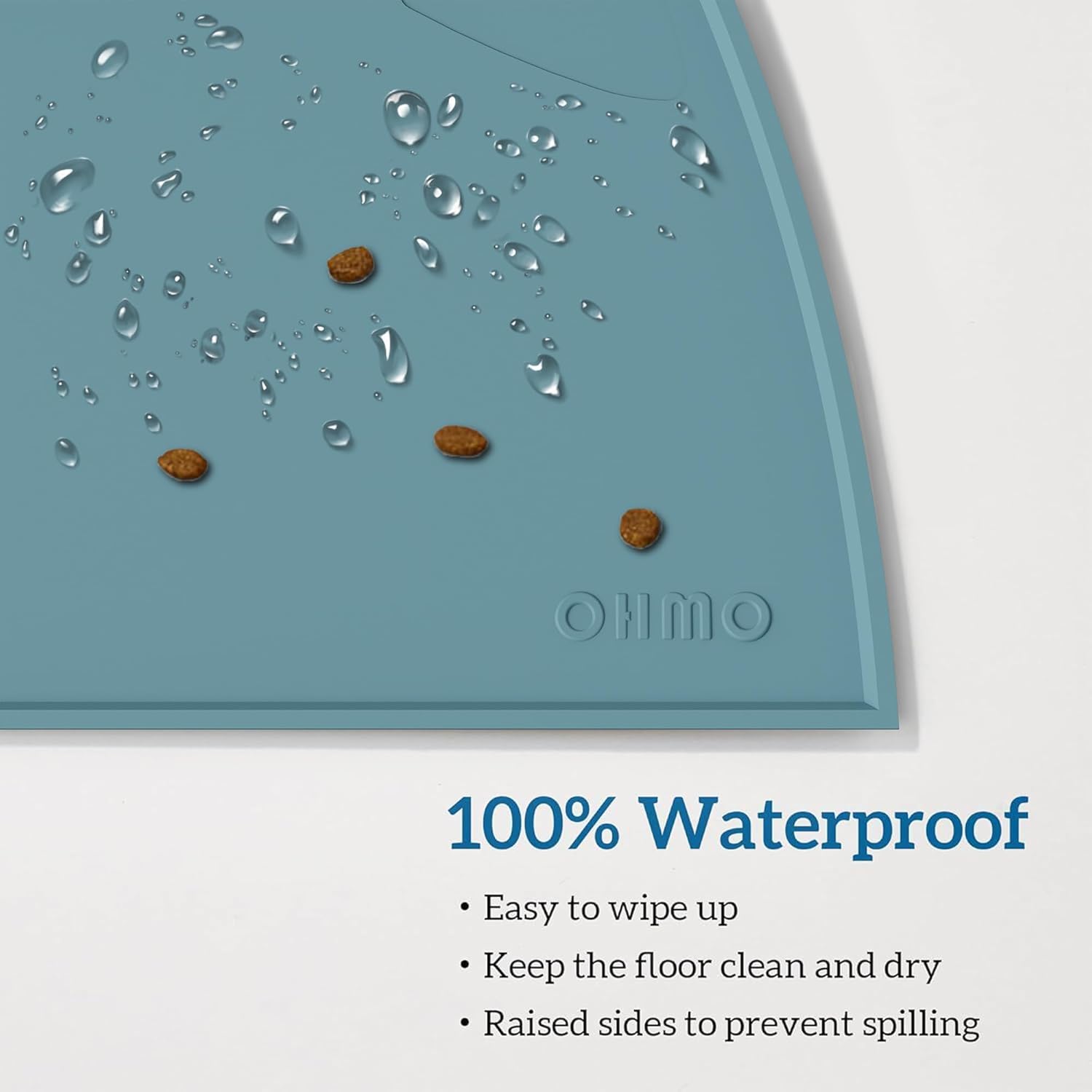 OHMO - Cat Food Mat, Silicone Pet Feeding Mat for Floor Non-Skid Waterproof Dog Water Bowl Tray, Easy to Clean Pet Placemat (Light Blue, 18 * 9.8'')