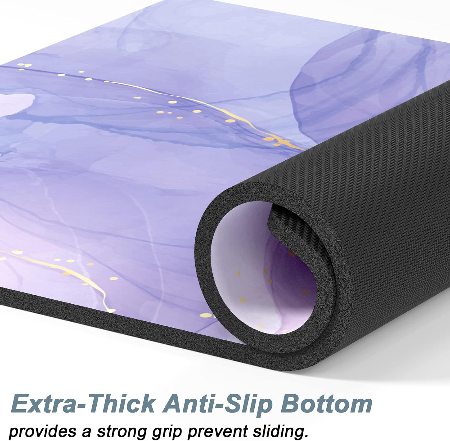Rnivvi Dog Food Mat, 16" x 24" Marble Absorbent Dog Cat Bowl Mat for Food and Water, Cute Anti-Slip Rubber Pet Feeding Rug Protect Floors, Puppy Placemat for Feeding & Watering Supplies, Purple