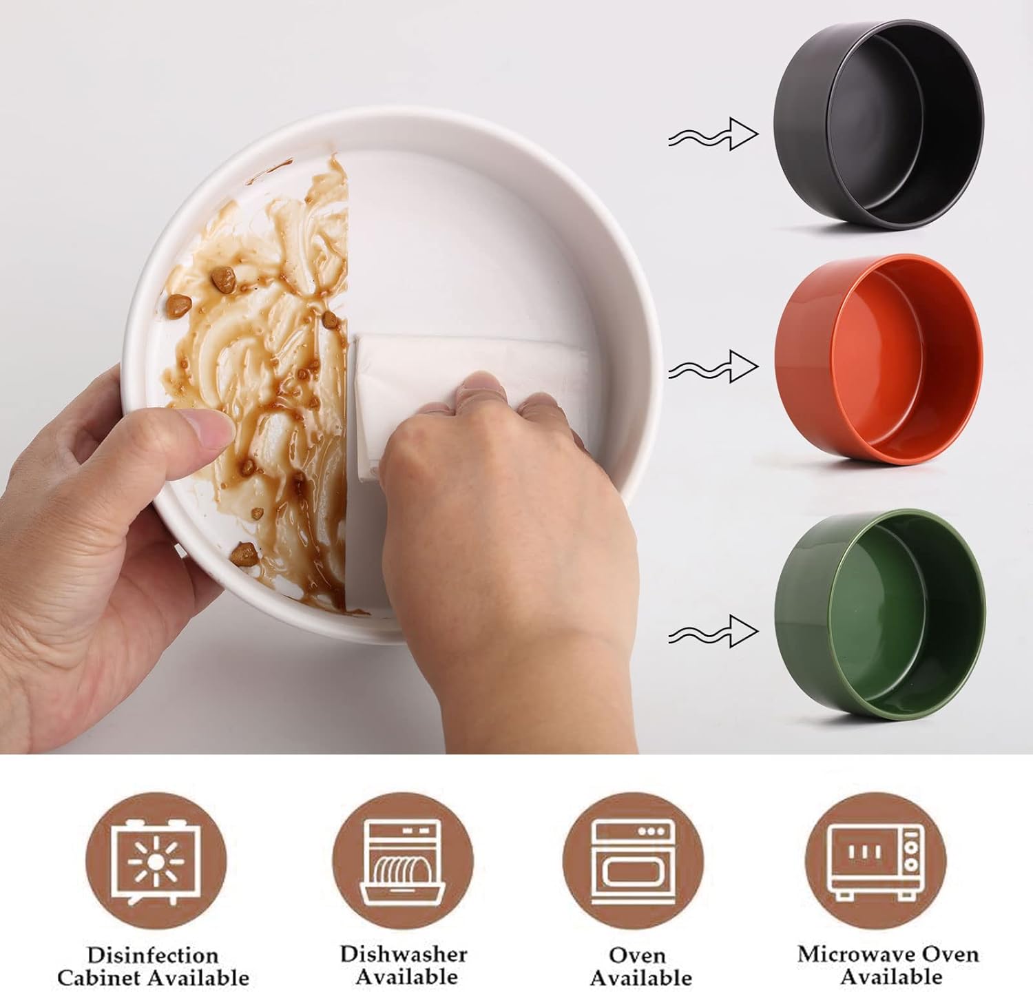 - Easy to Clean and Microwave Safe Ceramic Material - Cute ceramic dogs cats bowl with WOOD STAND design matches the home decorations. Ceramic bowl is made of Porcelain, this small sized dog food water bowls are free of lead and cadmium. High temperature ceramic, non-toxic harmless, no smell,durable.Clean sanitation, be helpful for pet health. conveniently dishwasher Microwave safe so this ceramic food bowl can be easily cleaned. No Fuss.