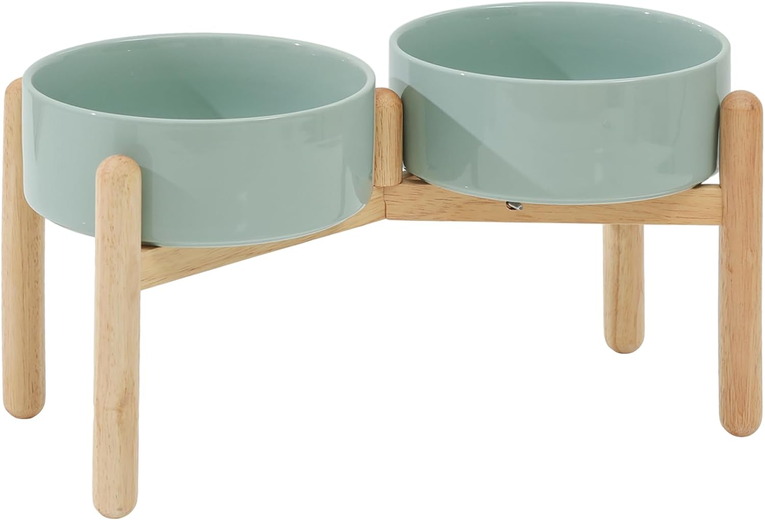 Ceramic 8.2inch Raised Dog Bowl with Stand for Large- Breed Dogs, Pet Food and Water Feeder (Double Bowl with Stand - Light Green)