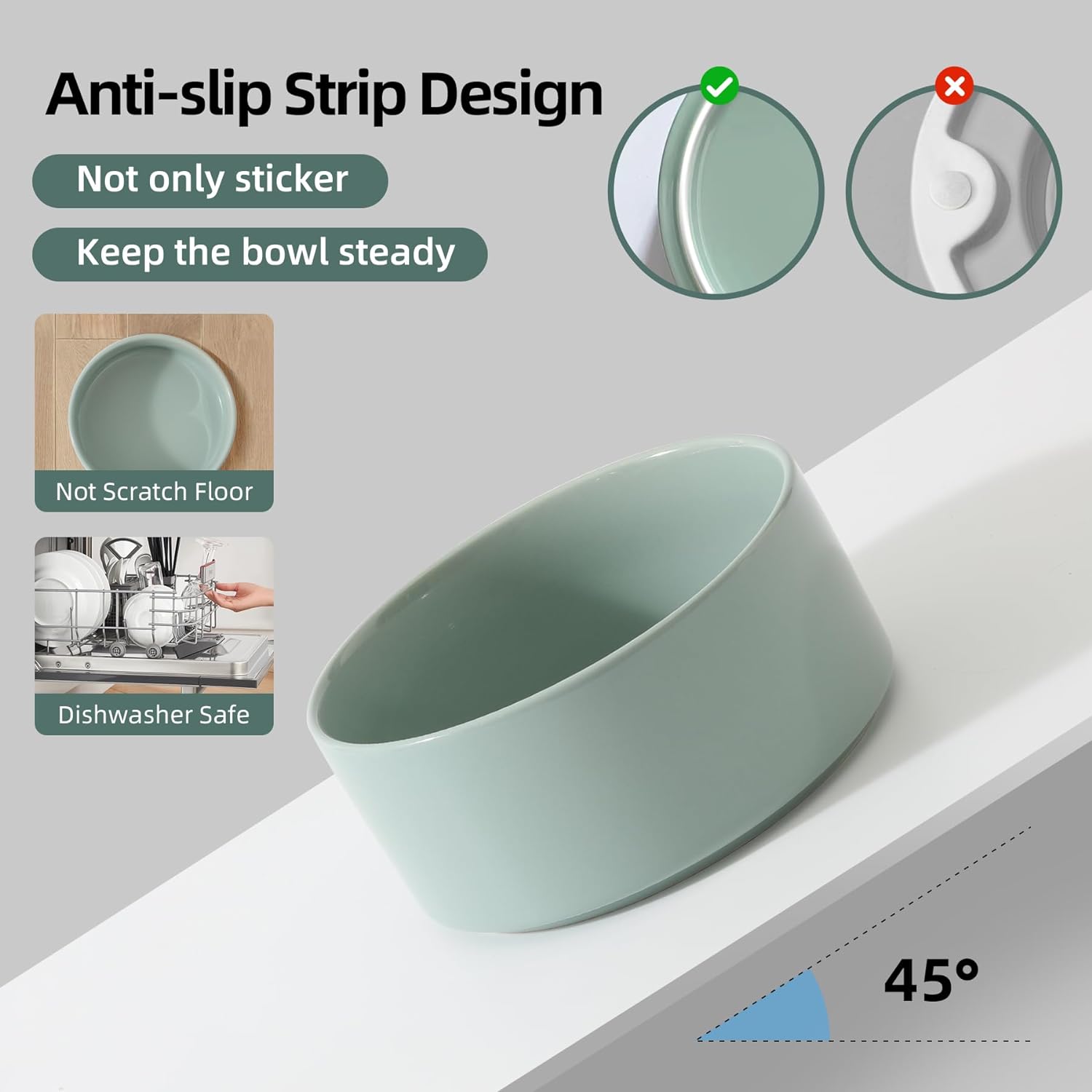 • Stable and Non - slip: Heavy - duty ceramic dog feeding bowl with wooden stand prevents bowls from sliding while your pet is eating.