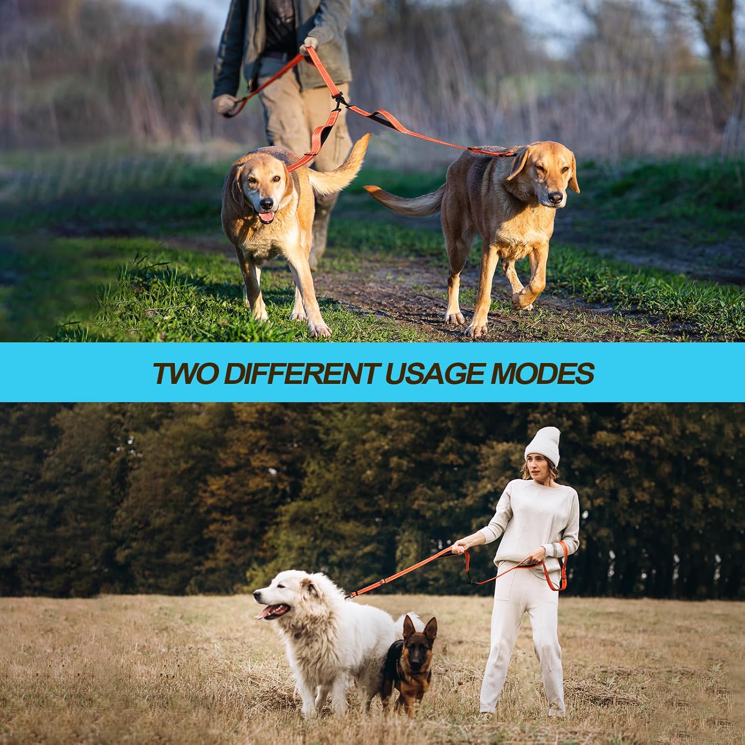 - 4 Comfortable Padded Handles: No more burned hands with 4 soft padded handles, which bring ultimate comfort and let you free up one hand while using this split leash for walking 2 dogs