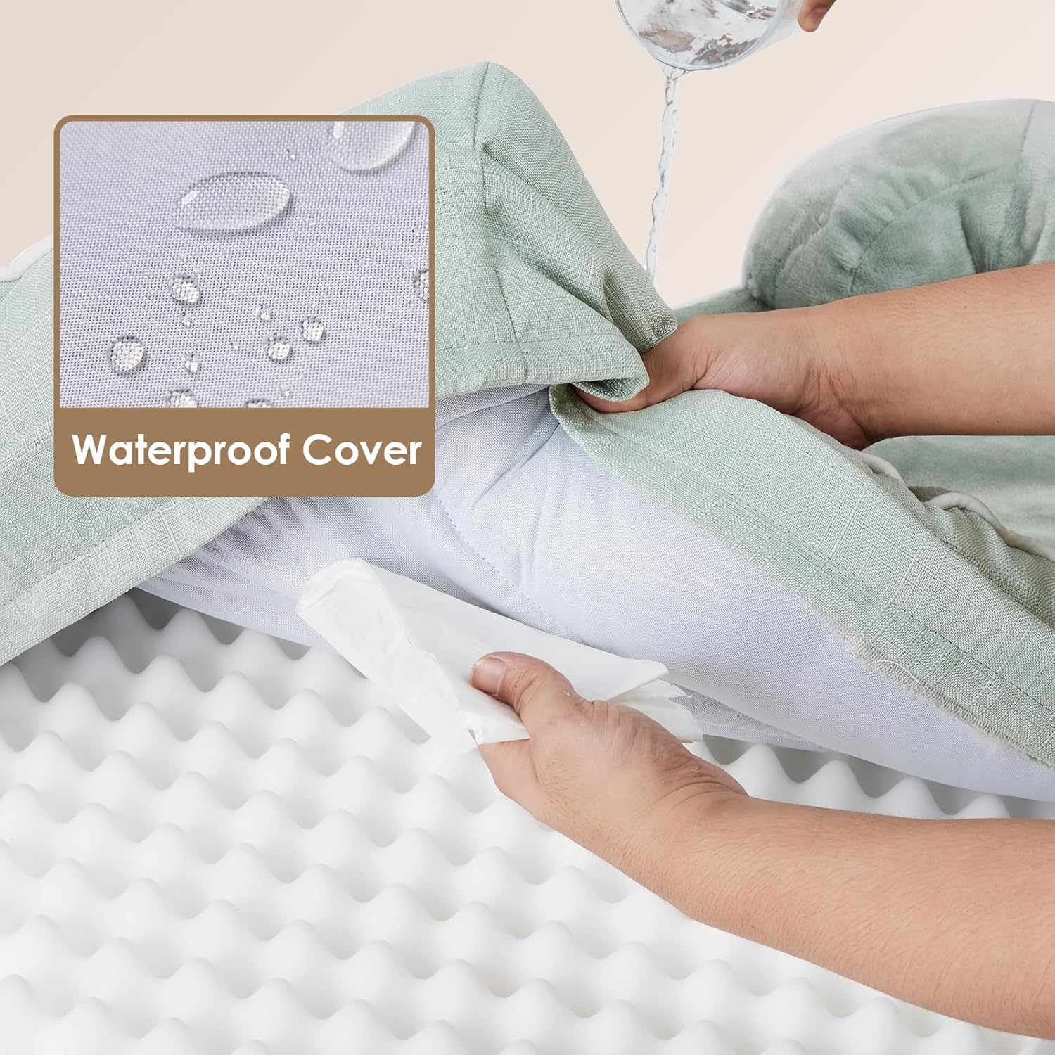 EHEYCIGA Orthopedic Large Dog Bed, Waterproof Memory Foam, Non-Slip Bottom, Sage Green, 35"L x 22"W x 6.5"Th