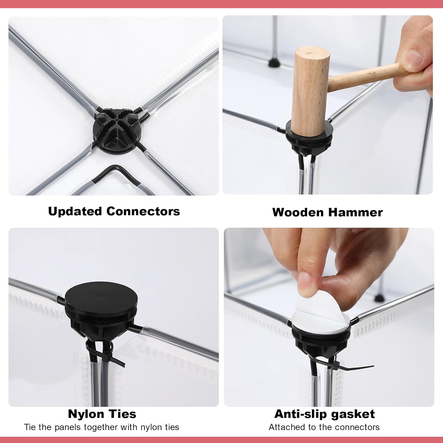 • [Easy DIY Installation]: Our transparent small animal pen is made of plastic, making it lightweight and durable. You can customize the panels into any shape, but also can move and disassemble the portable puppy playpen according to your needs easily.