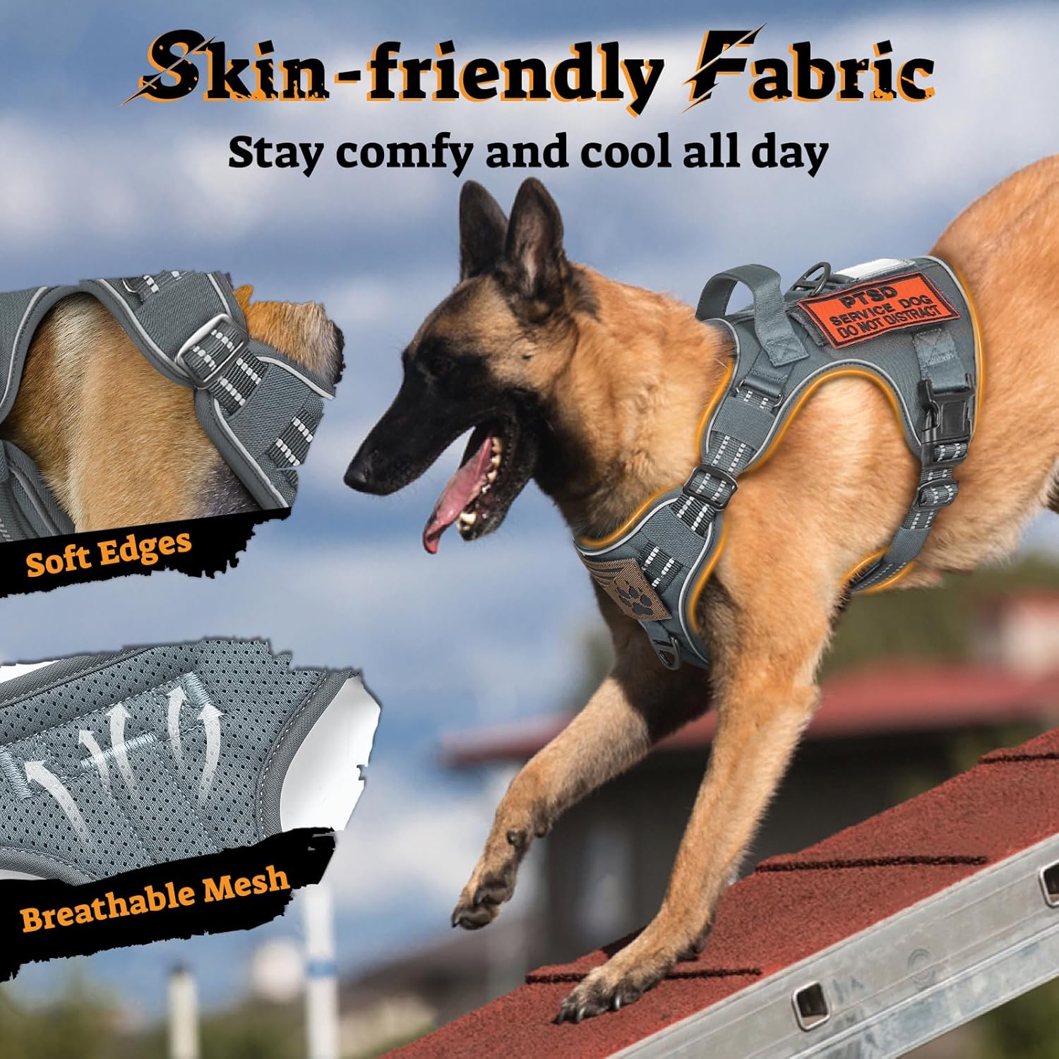 - Comfortable and Secure: The harness is crafted with breathable cushion padding and a soft edge for cozy wearing, while the oxford cloth material and reinforced stitches at key stress-bearing parts make it rugged and sturdy. Furthermore, the all-around reflective stripes enhance visibility and security in the dark