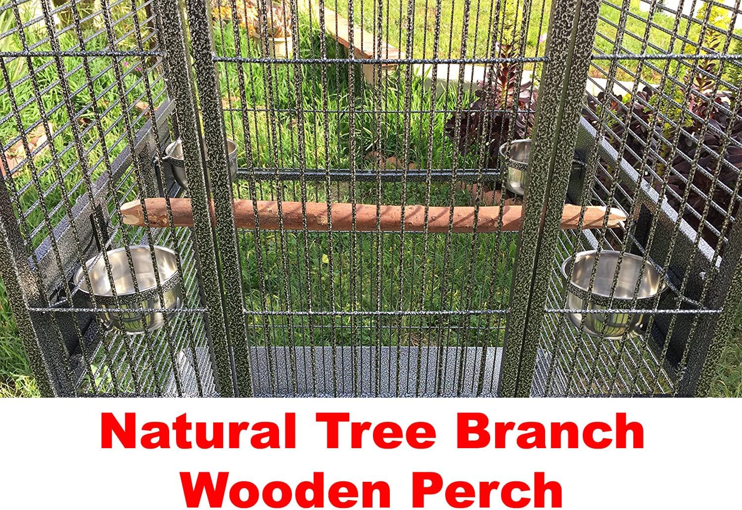- 【Four Stainless Steel Cups】 With Swivel Solid Metal Plated feeder doors prevent spillage, Include One Side Top Breeding Solid Door. Inside Standing Natural Wooden Perch.