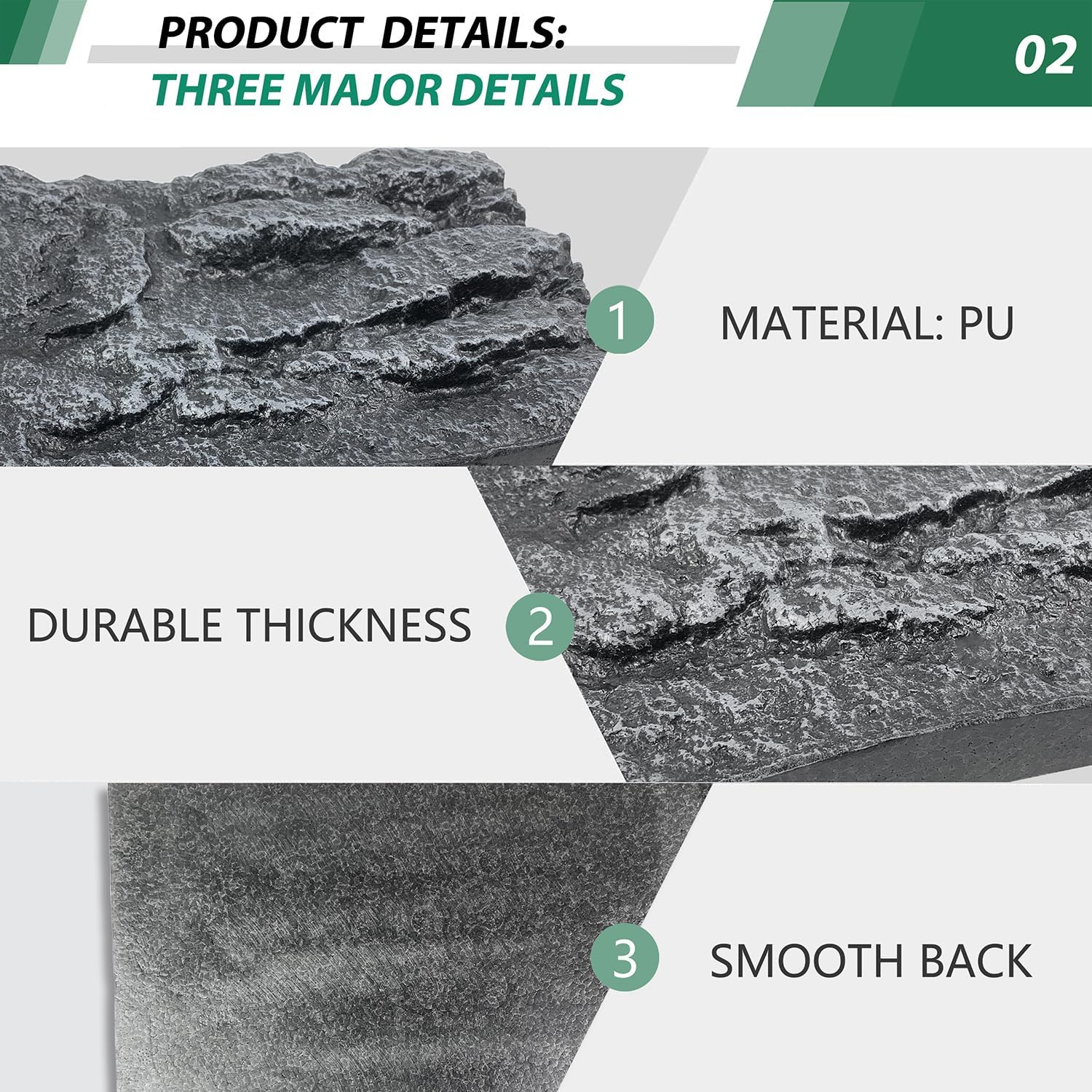 - [Flexible size]:The rock background panels are 17.7 inches long, inches wide and 11.8 inches thick,and can be spliced and used alone.Suitable for snakes,turtles,whiskered dragons,lizards,leopard geckos,crested geckos,tree frogs,pythons,turtles,fish,etc.