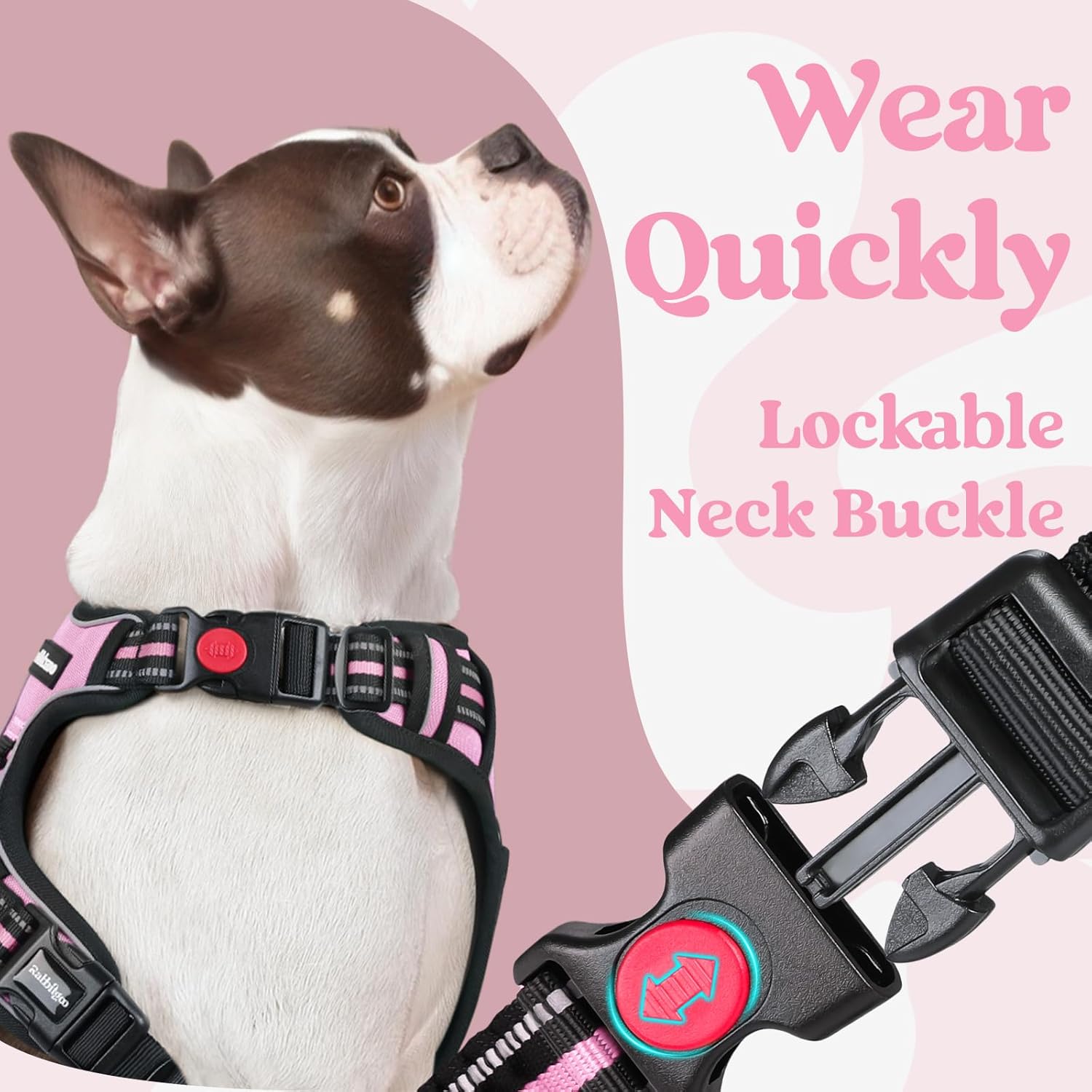 rabbitgoo Dog Harness for Large, No Pull Pet Harness with 3 Buckles, Adjustable Soft Padded Vest with Control Handle, Walking Reflective Pet Vest for Extra Large Dogs, Pink, XL