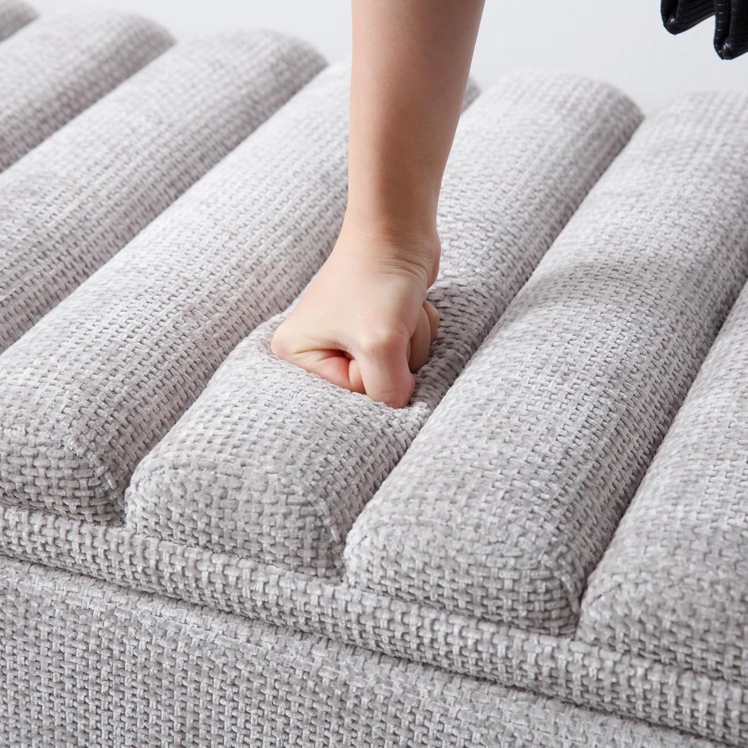 Kmax 45" Storage Bench Velvet Entryway Bench Upholstered Ottoman Bench with Wavy Top & Safty Hinge for Bedroom Living Room Hallway, Grey