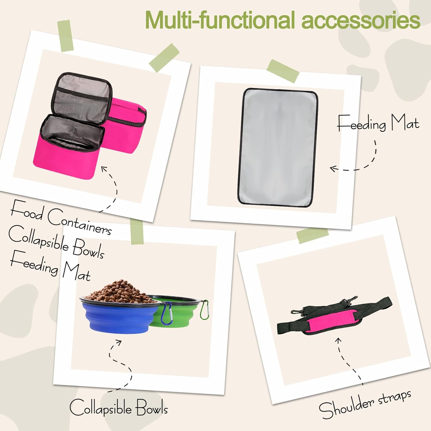 - 【The Dog Travel Organizer Kit Bag Ideal for everyday use for all of your essentials】: conveniently carries food, water, treats, leashes, Frisbee, pet toys, first-aid kit. Applicable Occasions: traveling, hiking, outdoor activities, go to the park.