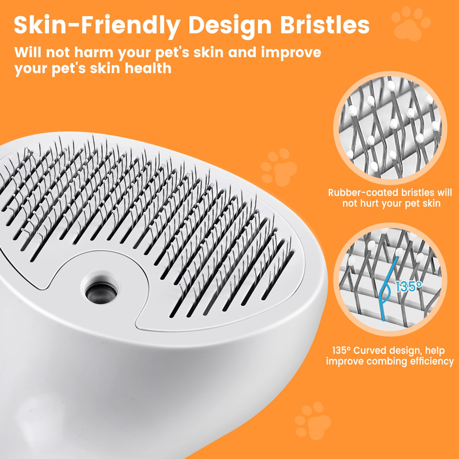 - 【Spray Pet Brush】Experience a comfortable grooming session with our extral mist spray function. Simultaneously spraying while grooming reduces static and flying hairs, making the process more comfortable and seamless. This helps to minimize tangling and knotting issues. You can add conditioner or softening agents to the spray, enhancing your cat's hair softness and shine. we've reduced the spray working noise of the cat brush to 30dB, minimizing the chances of startling your furry friend. 【Note】Our cat brush only turns water into mist, not heating water into hot vapor.