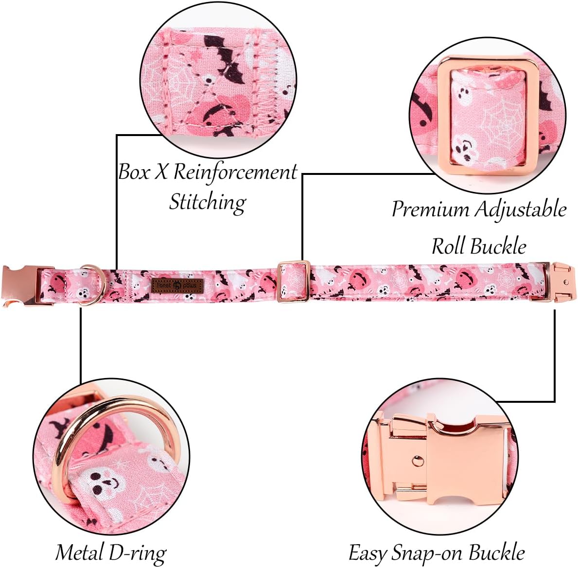 Lionet Paws Halloween Dog Collar, Cute Fall Pink Dog Collar for Large Dogs, Adjustable Cotton Pumpkin Ghost Pet Collars for Medium Large Dogs