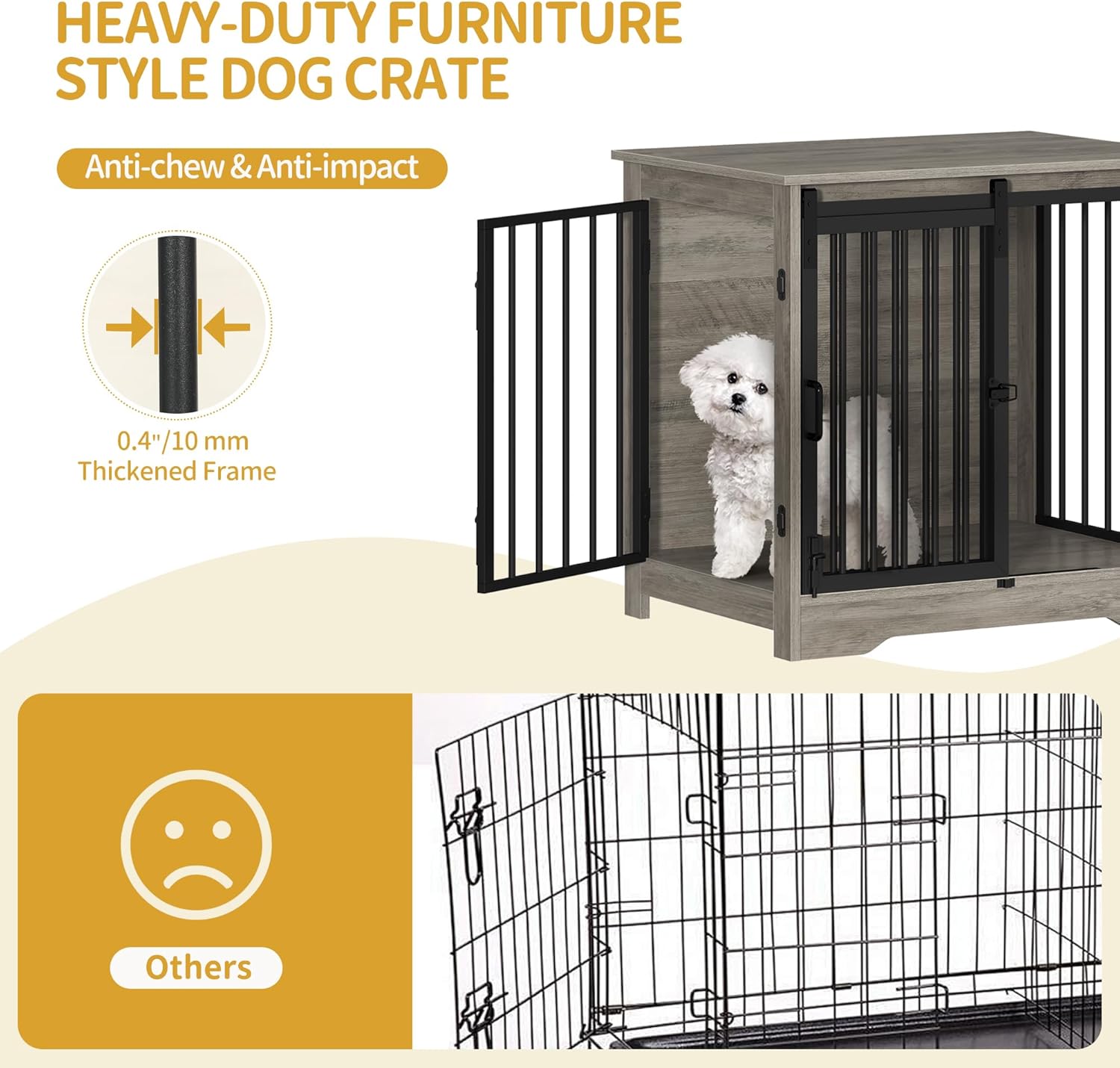 • Superior Material: Our wooden dog crate furniture is built to last. The boards are made of engineered wood with wear-resistant and easy-to-clean surface. This dog crate frame is made out of FSC-Certified wood