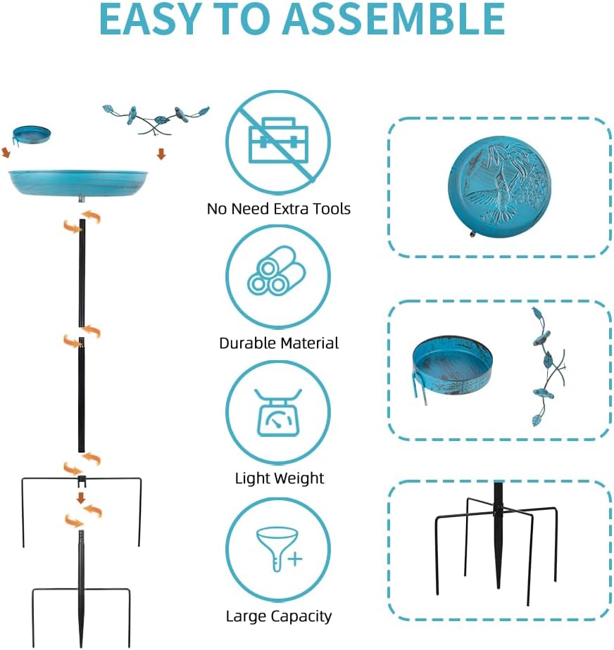 - Easy to Install and Clean: Don't require any other tools, as long as the bird bath bowl and various poles are tightened in sequence, the assembly can be completed. When cleaning birdbaths during use, simply wipe the surface of the bird bath with a cloth