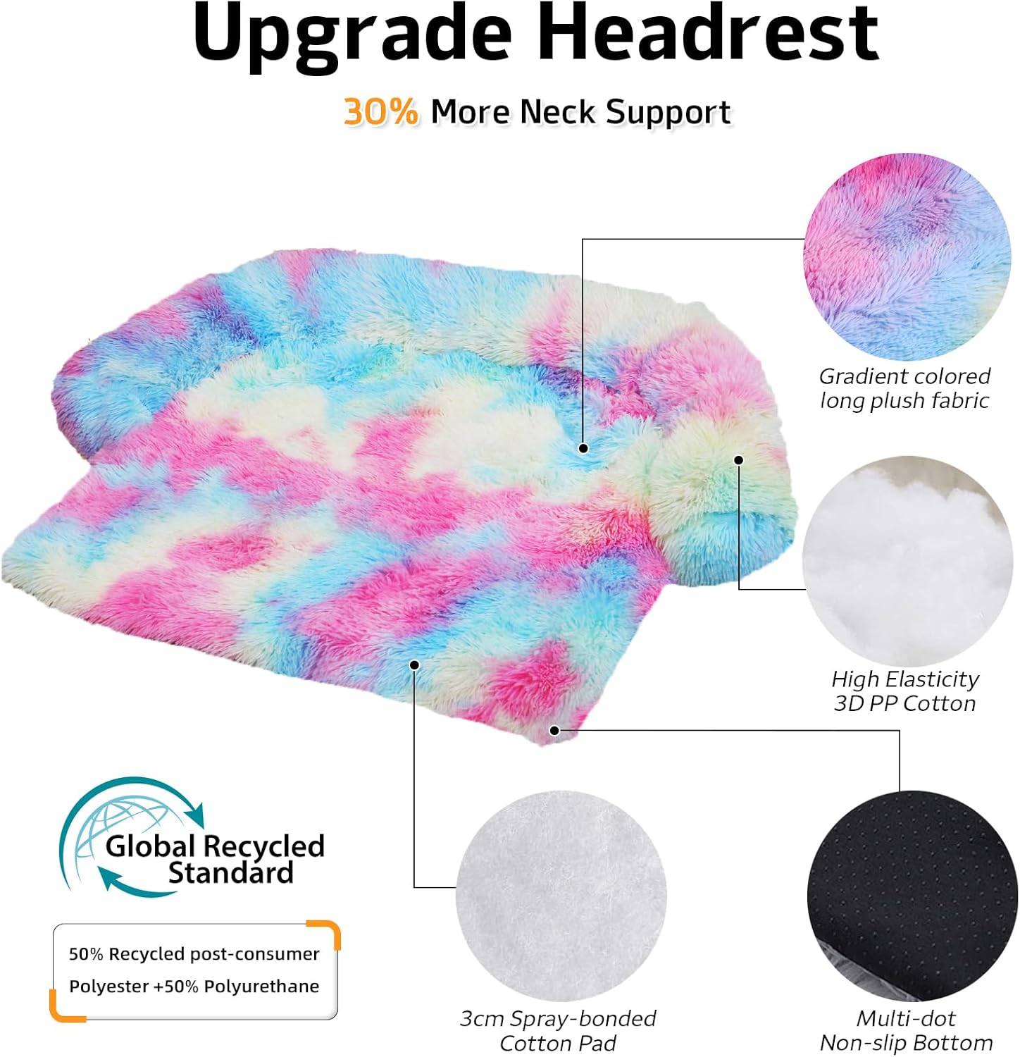 GGIB Calming Dog Bed Fluffy Plush Dog Mat for Furniture Protector with Removable Washable Cover for Large Medium Small Dogs and Cats (Large, Rainbow)