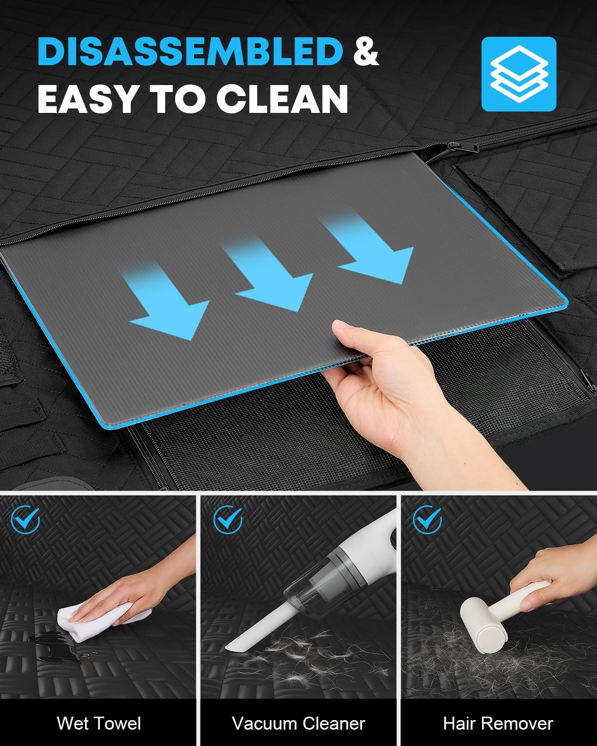 - EASY TO INSTALL & CLEAN - It only takes seconds to remove or install the rear seat protector for dogs. Easy to clean with a damp cloth or vacuum. The perfect gift for pet lovers, fitting most cars, crossovers, SUVs, and small trucks.