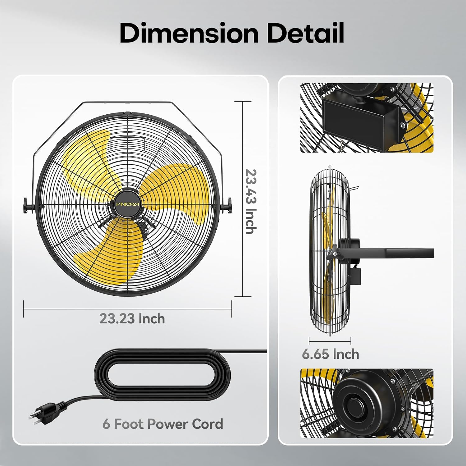 - 3 Speed Settings for Your Needs: Customize your cooling experience with low (4100 CFM), medium (4800 CFM), and high (5200 CFM)-speed options, catering to different needs and preferences—whether for normal circulation or intense airflow of the wall mount fan