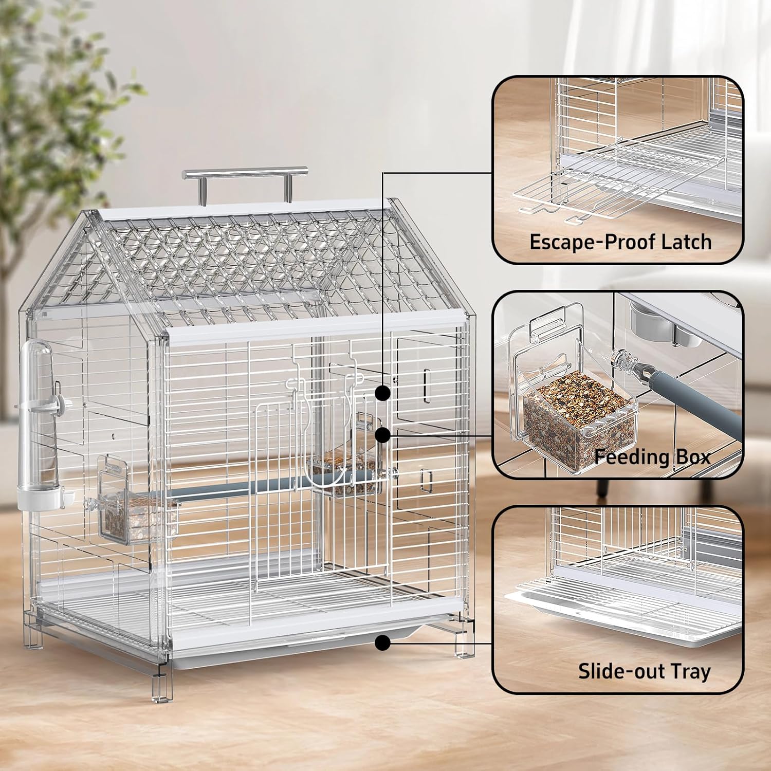 • 【360° Observation】The transparent side panels allow birdwatchers to observe your bird's activities from any angle, whether it's their joyful hopping, leisurely foraging, or melodious singing, all in full view.