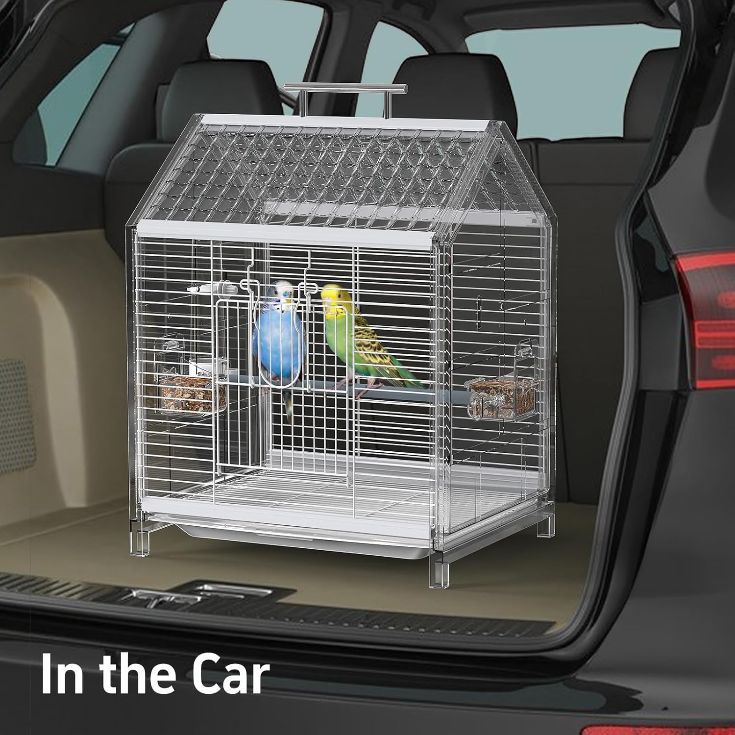 • 【Versatile for Multiple Settings】This bird cage is perfect for travel, accompanying you in the car (can be placed in the trunk or on the seat with a seatbelt secured), and is also suitable for home use, easy to move around the house. Whether it's for a short trip or everyday home use, it serves as an ideal habitat for your bird.