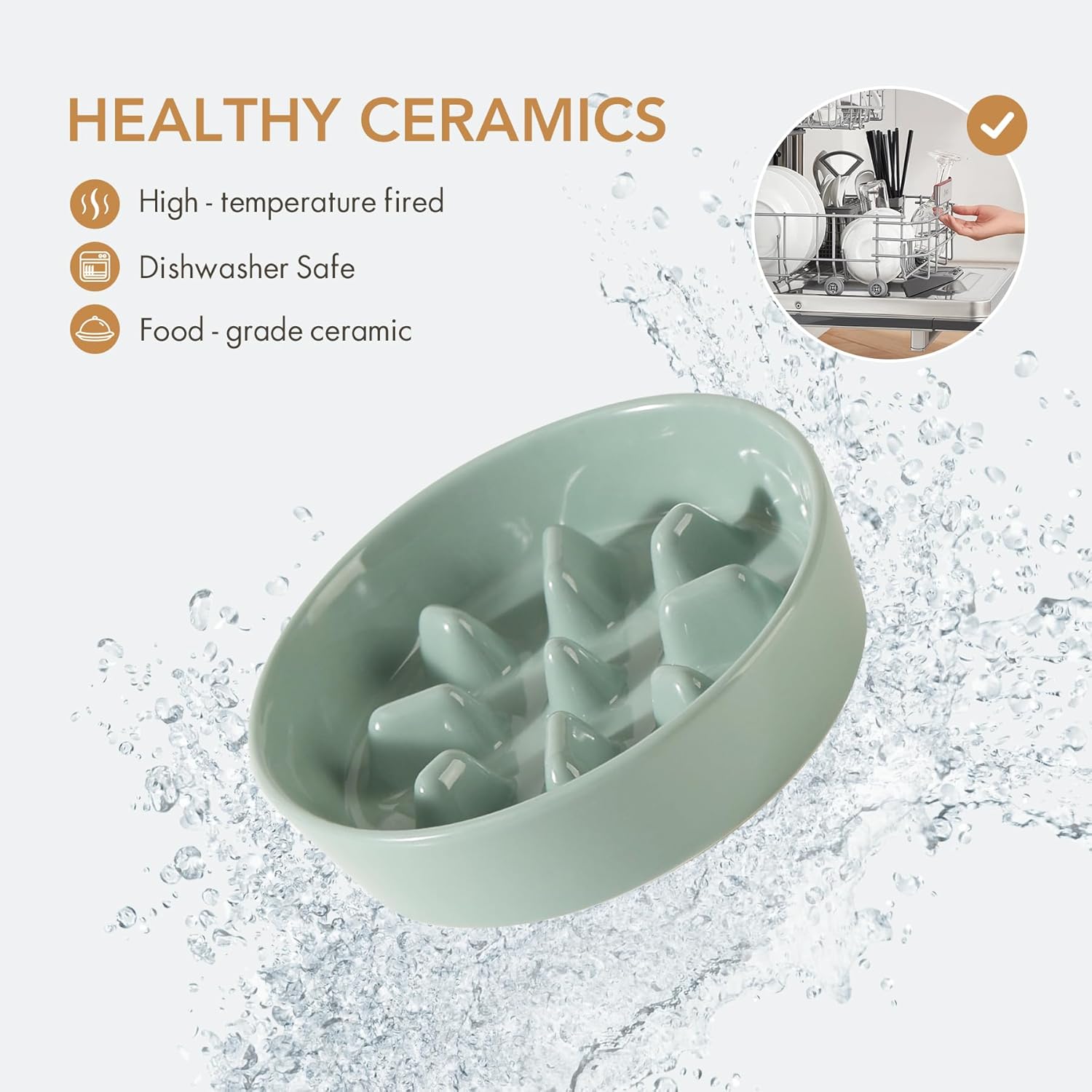 • Stable and Anti-Slip: Ceramic bowl is heavy and stable, and the anti-slip strip at the bowl's bottom can prevent bowl from sliding while your pet eating.