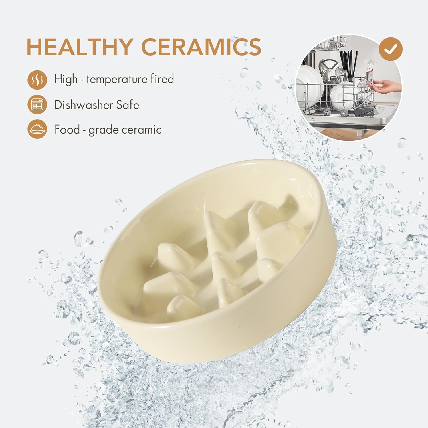• Stable and Anti-Slip: Ceramic bowl is heavy and stable, and the anti-slip strip at the bowl's bottom can prevent bowl from sliding while your pet eating.