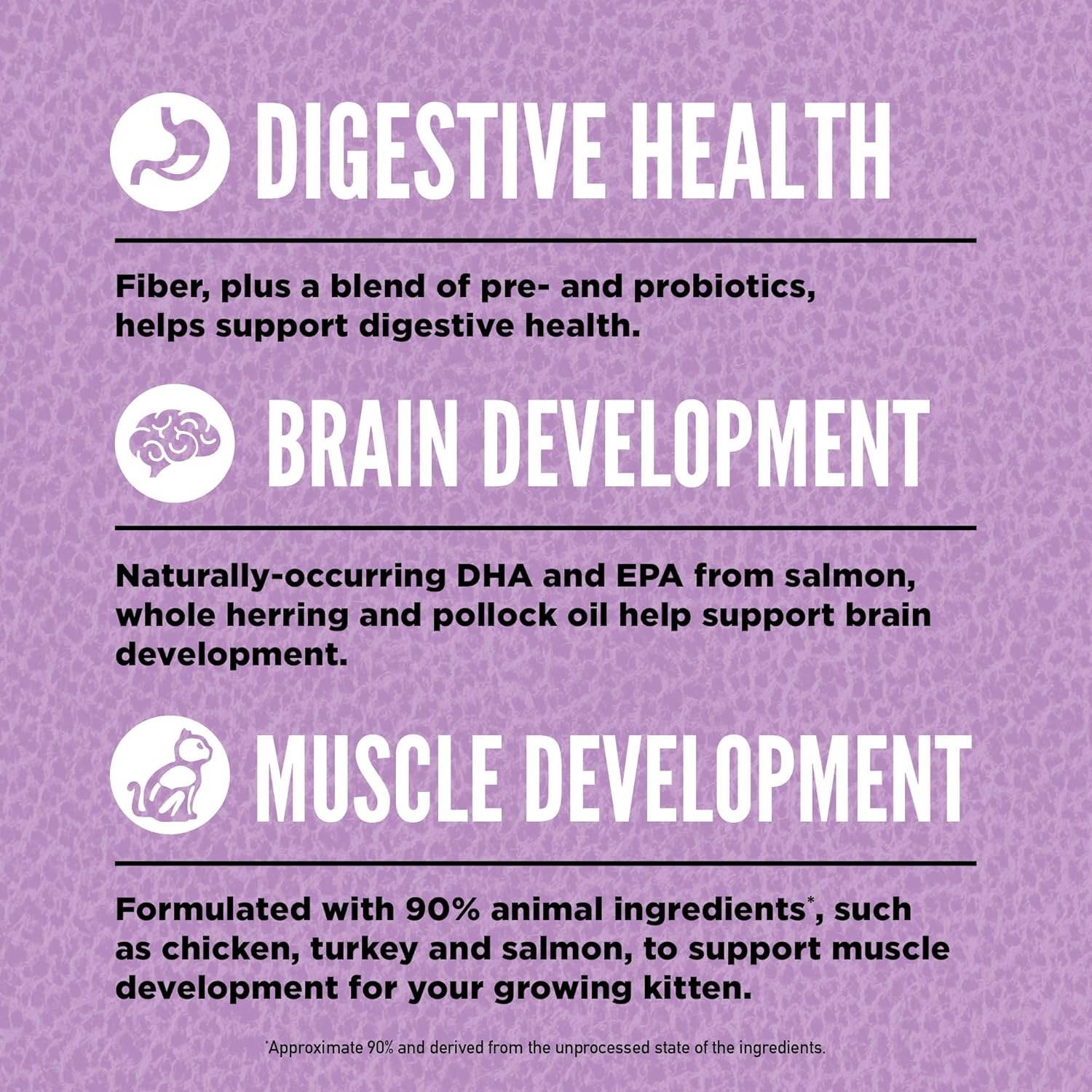 - This nourishing cat food kibble helps support your kittenβs Digestive Health, Brain Health and Muscle Development.