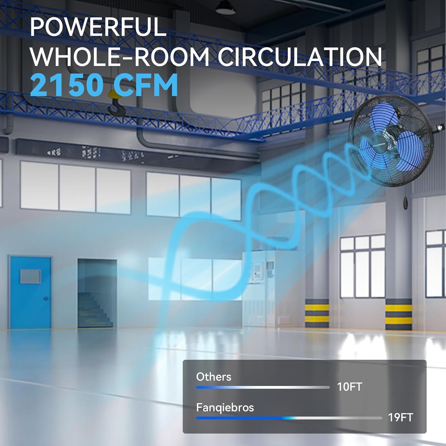 - ๐๐ข๐ ๐ก ๐๐๐ฅ๐จ๐๐ข๐ญ๐ฒ ๐๐ข๐ซ ๐ ๐ฅ๐จ๐ฐ - Equipped with 3 adjustable wind speeds, low (1700CFM), medium (2100CFM) and high (2500 CFM), this wall fan utilizes the raw power of the pure copper motor to provide hurricane-like airflow to meet your garages, shops, covered patios, or anywhere else you need