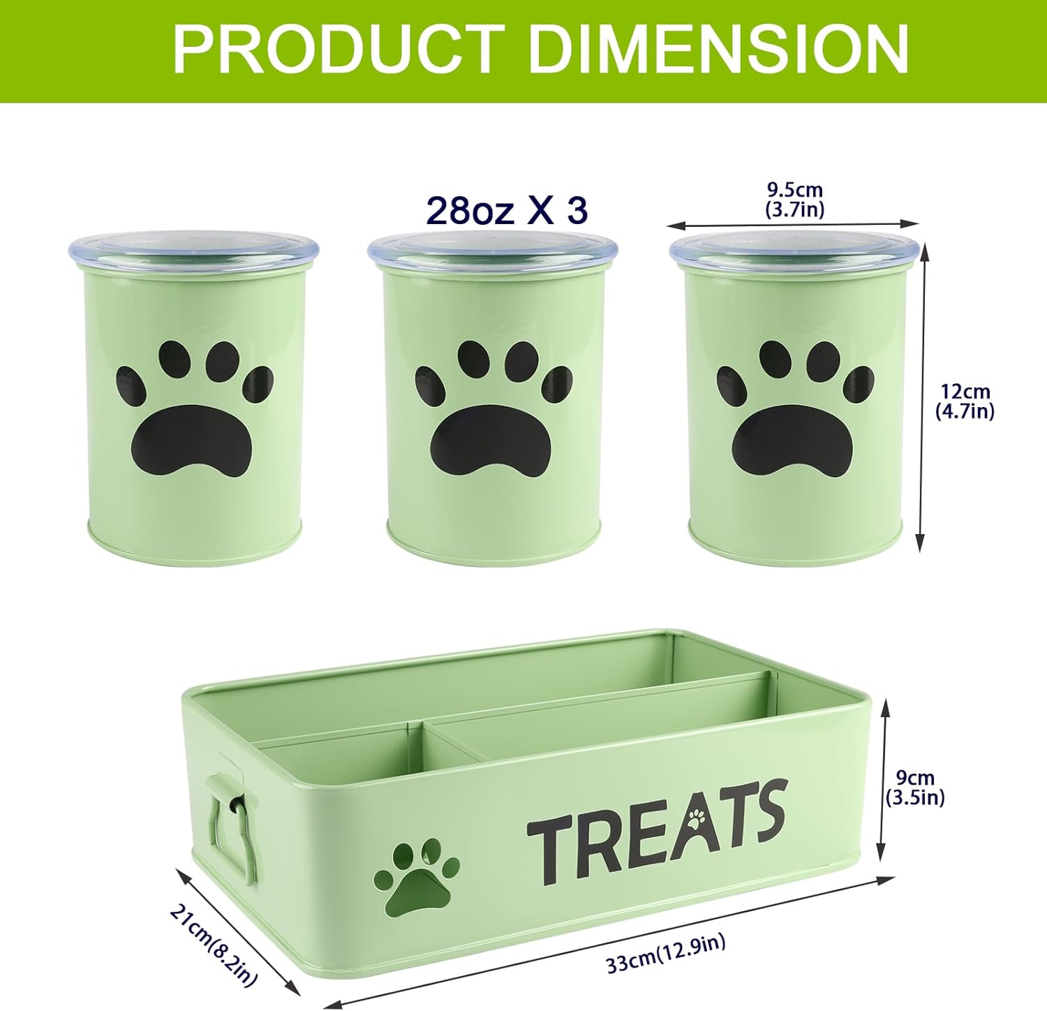 28oz Metal Dog Treat Container Set of 3,Dog Treat Jars with Airtight Lids,Cat Treat Jar,Dog Treat Canister for Countertop,Coated Galvanized Steel Dog Treats Station-Green