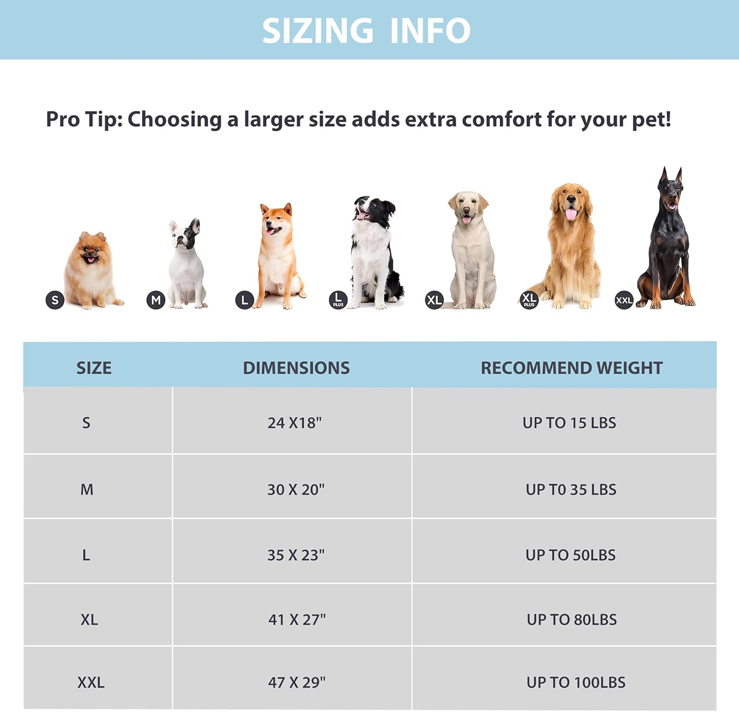 - Breed Recommendation : 35"L x 23"W x 0.8"H