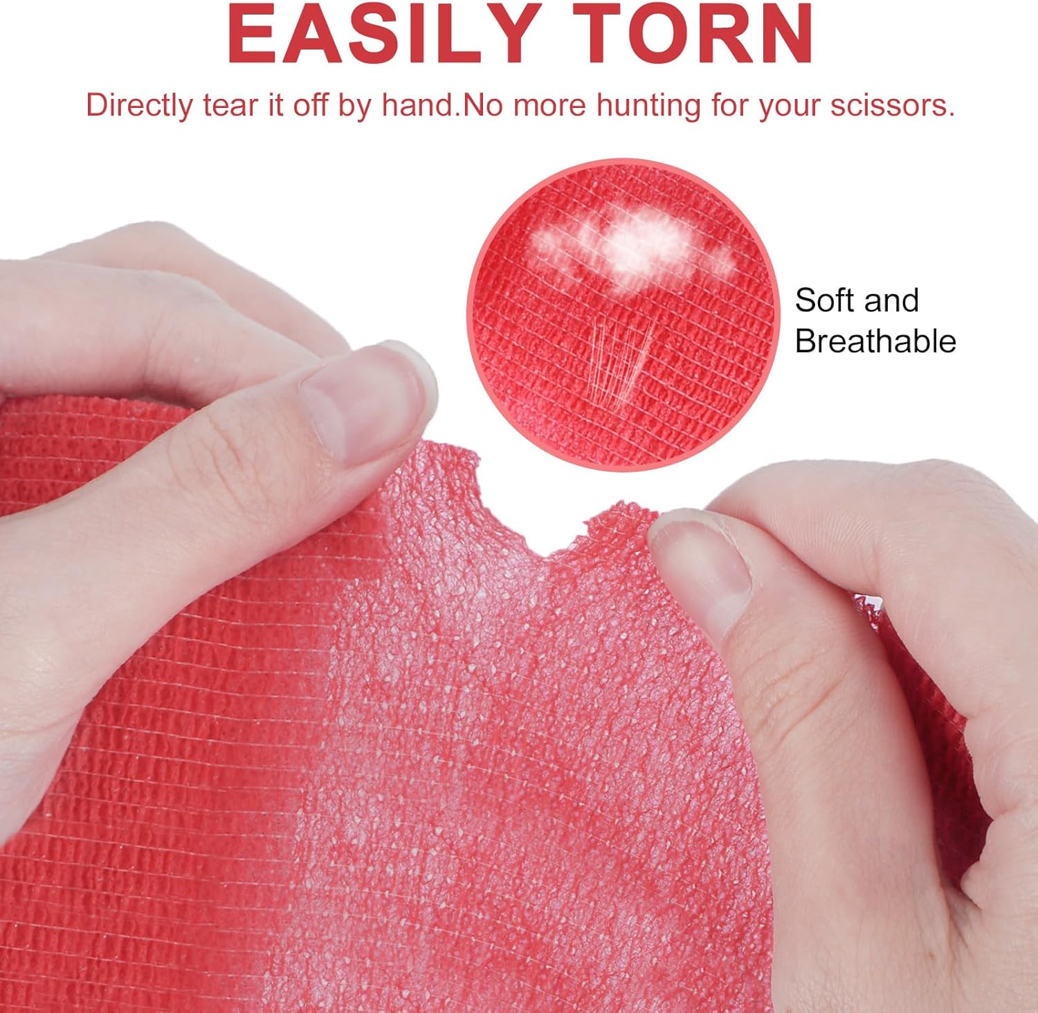 • 【No Residue & Effortless Application】Unlike ordinary tapes, this self-adhesive bandage sticks only to itself, not skin or hair. Easily tear by hand without scissors—perfect for quick fixes during sports, workouts, or pet emergencies. No pins or clips needed!