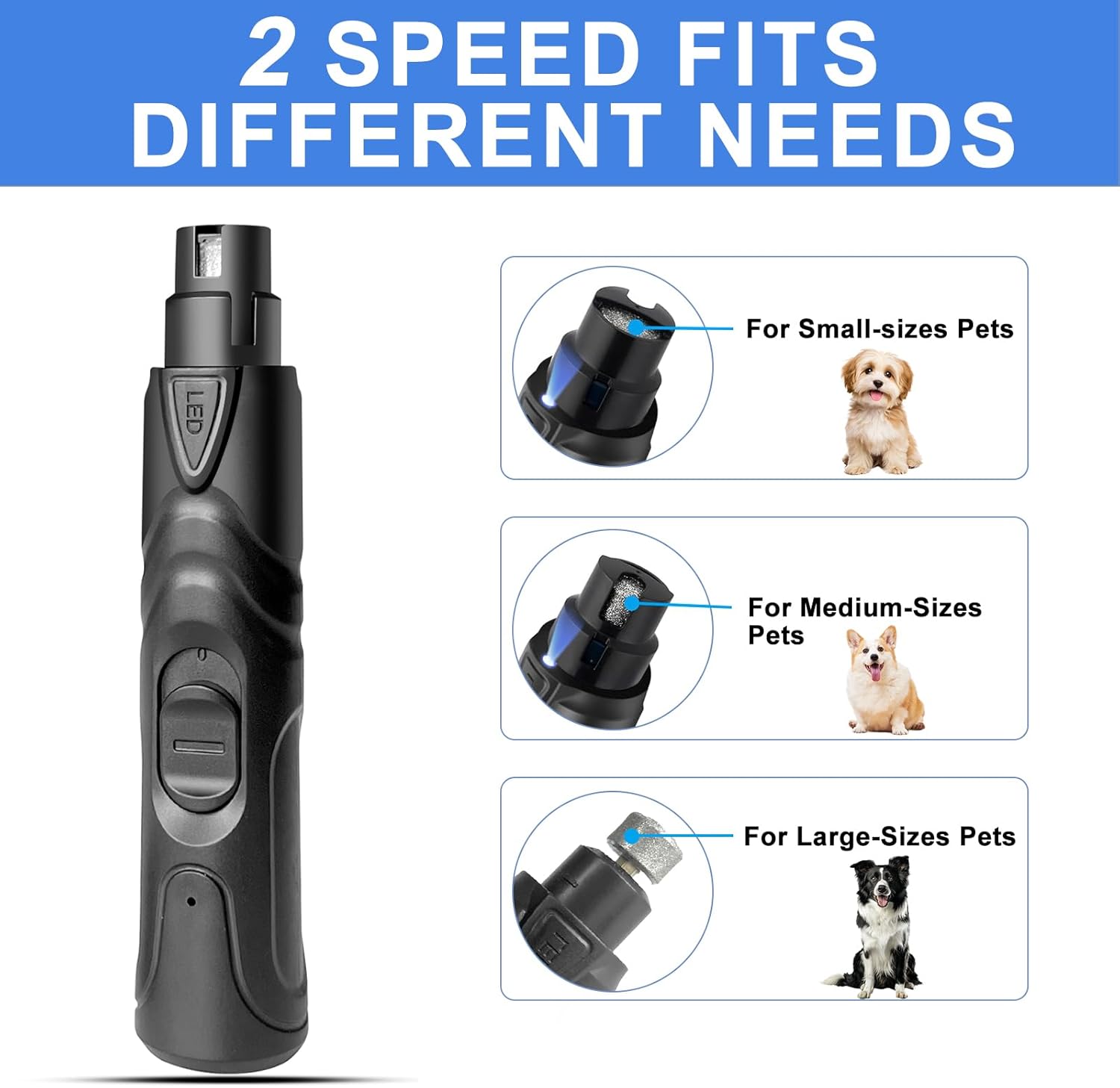 2-Speed LED Dog Nail Grinder,Professional Electric Pet Nail Trimmer with Quiet Motor, Painless Paws Grooming & Smoothing for Small/Medium/Large Dogs and Cats (Black)