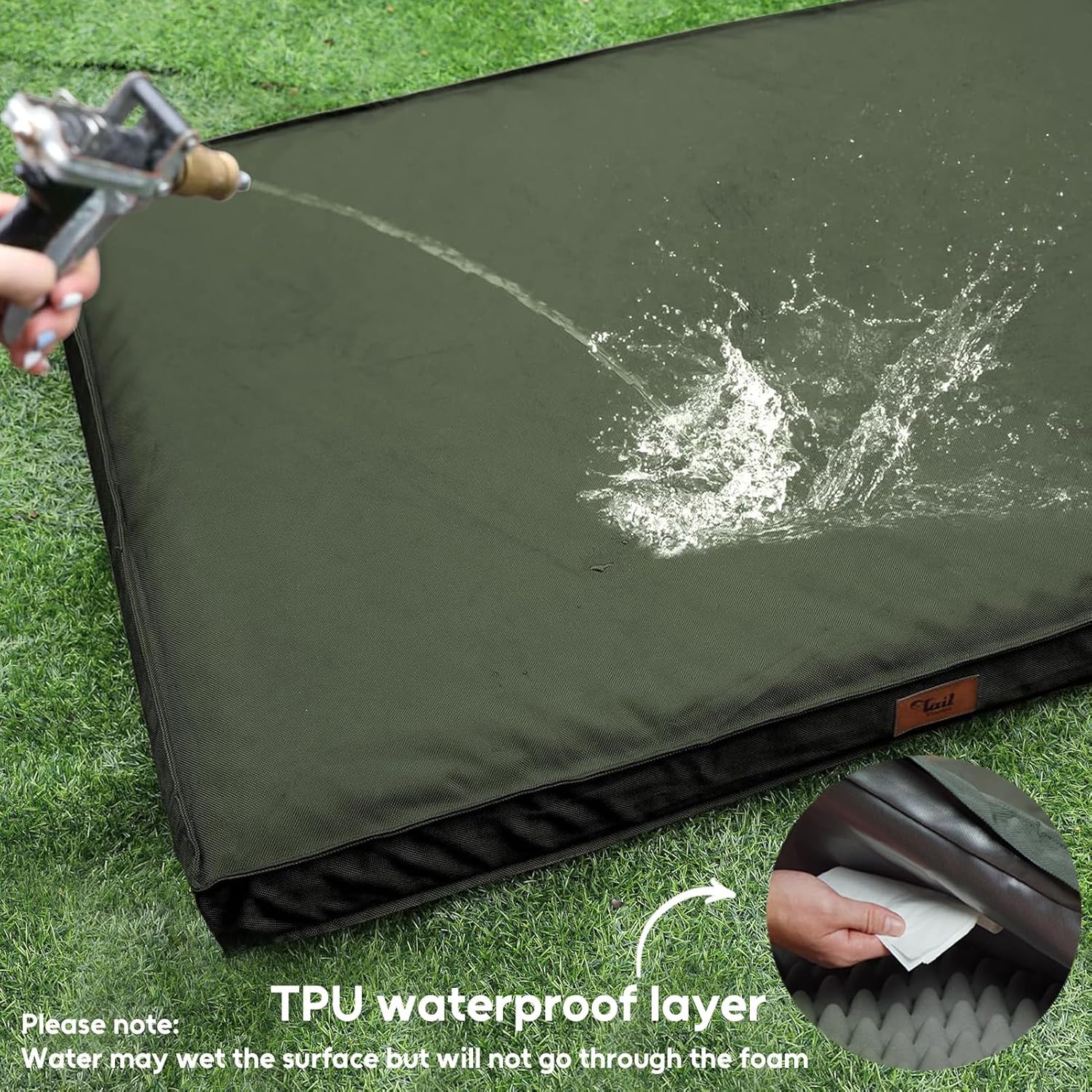 Outdoor Large Dog Bed, Waterproof Dog Bed for Large Dogs, Egg Crate Foam Pet Bed with Removable Washable Oxford Cooling Cover, Dark Green