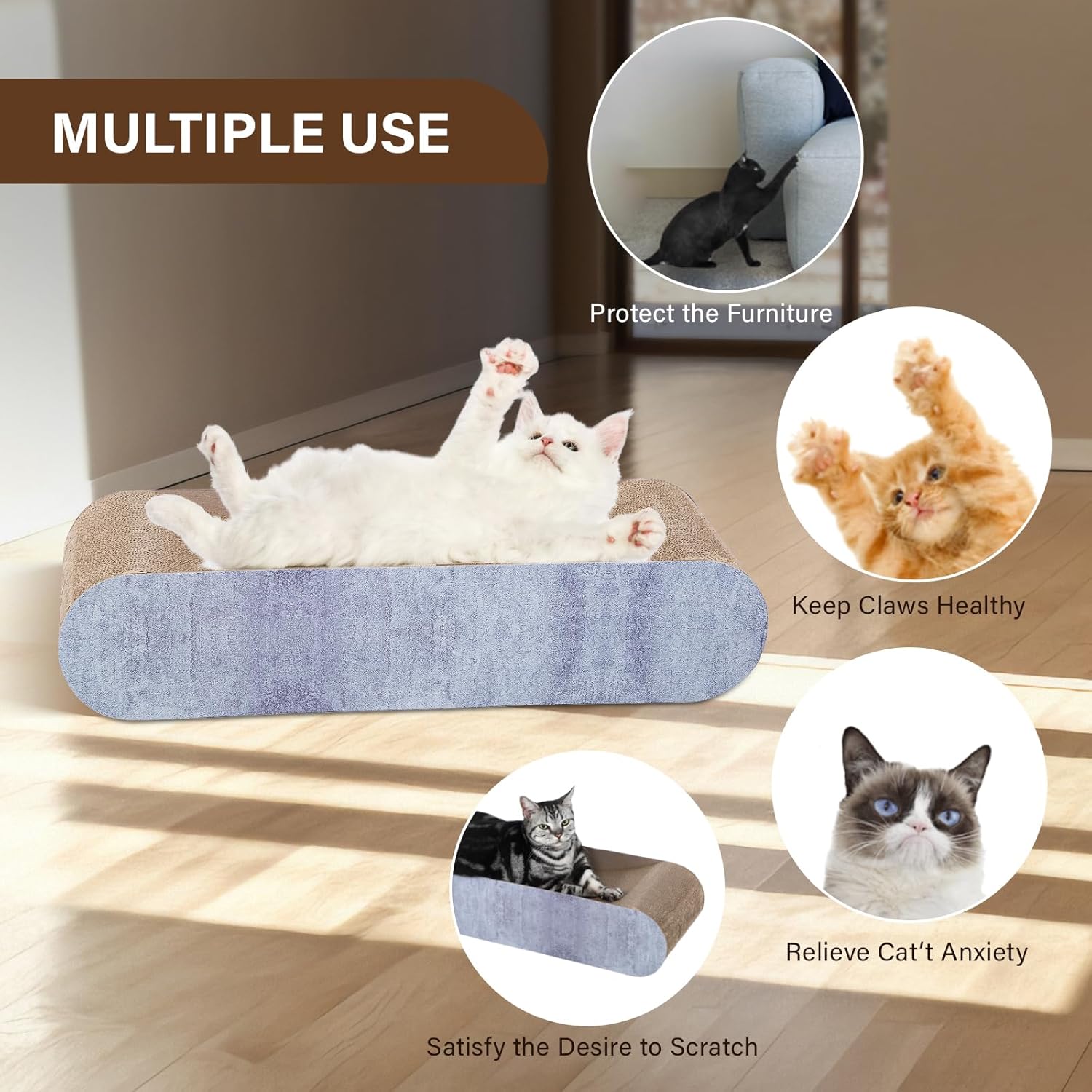 - FURNITURE PROTECTOR: This scratcher can fully satisfy catβs scratching needs, effectively helping their claws healthy and protecting your floors, walls, doors, sofas, carpets, curtains and so forth.