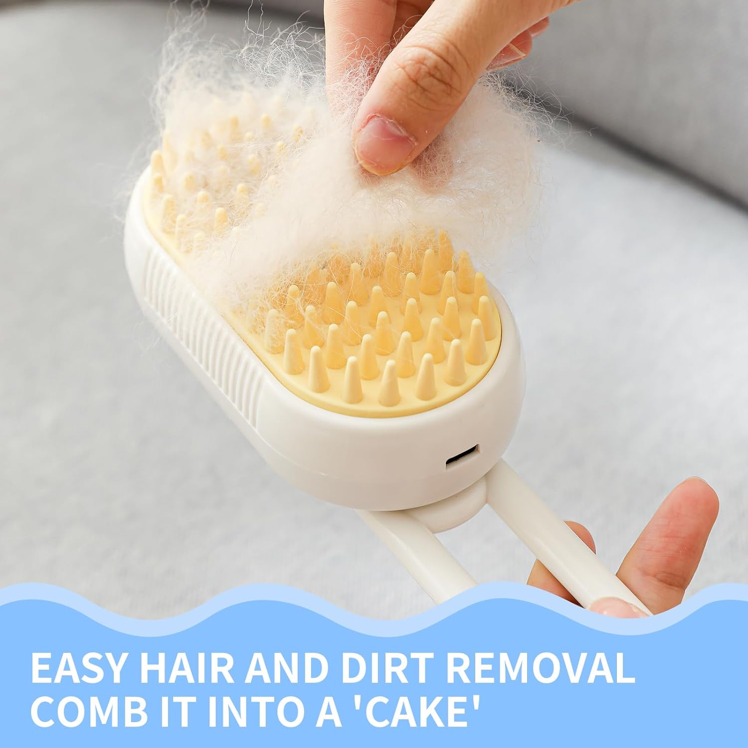 - 【Ergonomic Design】The shell and handle of this steam cat brush are specially reinforced with thickened materials, making it more durable and sturdy than regular pet brushes. The handle can rotate and fold 360 degrees, and can be hung or folded for storage. It doesn't take up much space, is anti-slip, provides a comfortable grip, and is convenient to carry when traveling