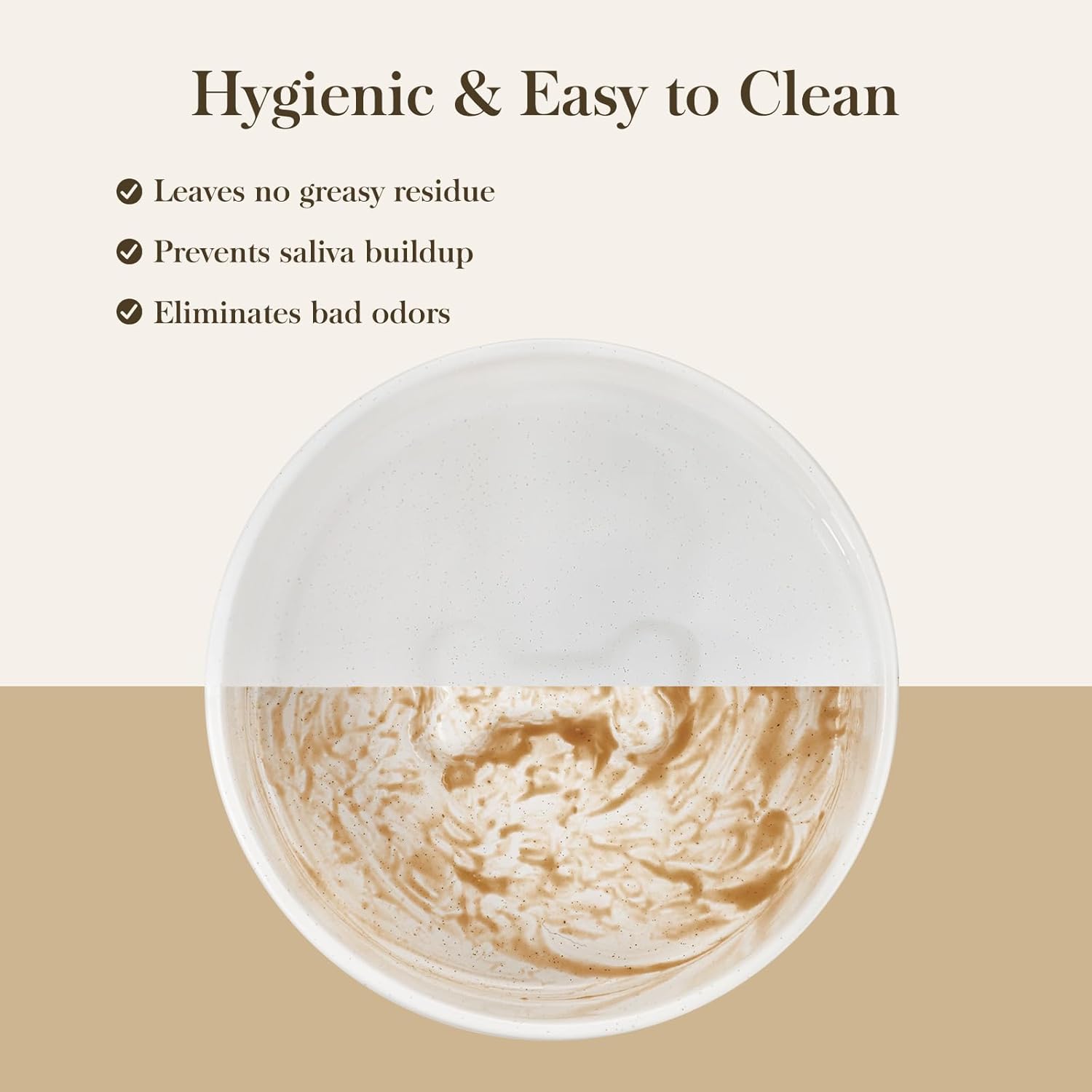 - DOUBLE BOWL DESIGN: One bowl for food and one for water. The wide-mouth design and ergonomic height make eating and drinking easier for your pets while reducing neck strain. Features a non-slip base and weighted construction to prevent sliding and maintain a tidy feeding area