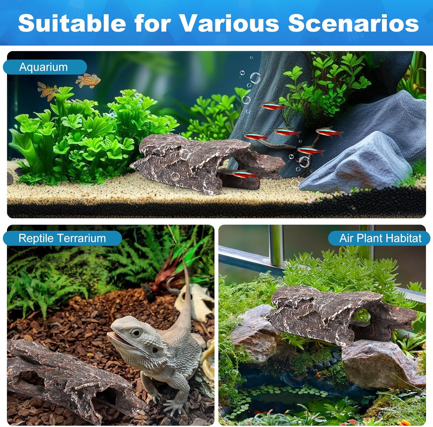 - Multi-Pet Habitat Solution: Designed for most aquariums and reptile terrariums. Ideal shelter for bettas, guppies, hermit crabs, geckos.