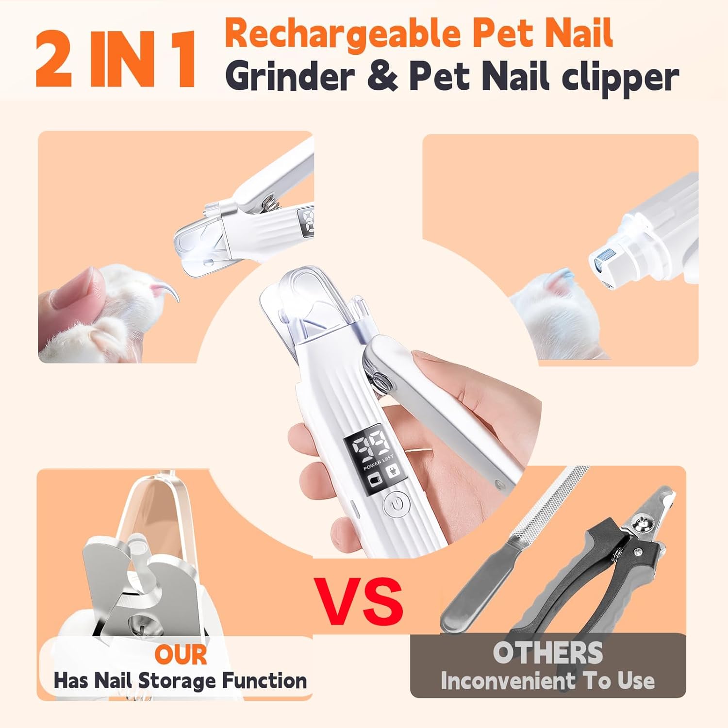 2-in-1 Dog Nail Clippers & Cat Nail Clippers Trimmers for Large Medium Small Dogs Cats Claw Trimmer Very Quiet and Low Vibration Electric Dog Nail Grinder with 2 LED Lights Pet Nail File Safe Painless
