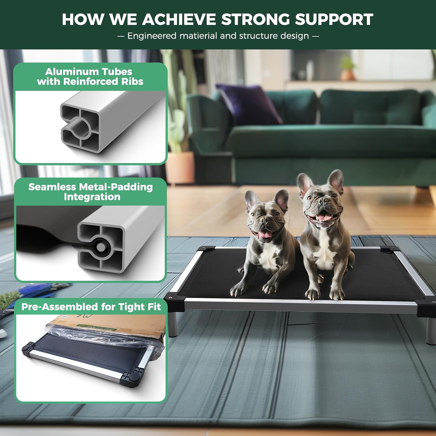 - Indestructible & Dog-Safe: Crafted with a premium aluminum alloy frame and chew-proof edges, this bed withstands aggressive chewers while keeping your pupโs gums safe and happy.