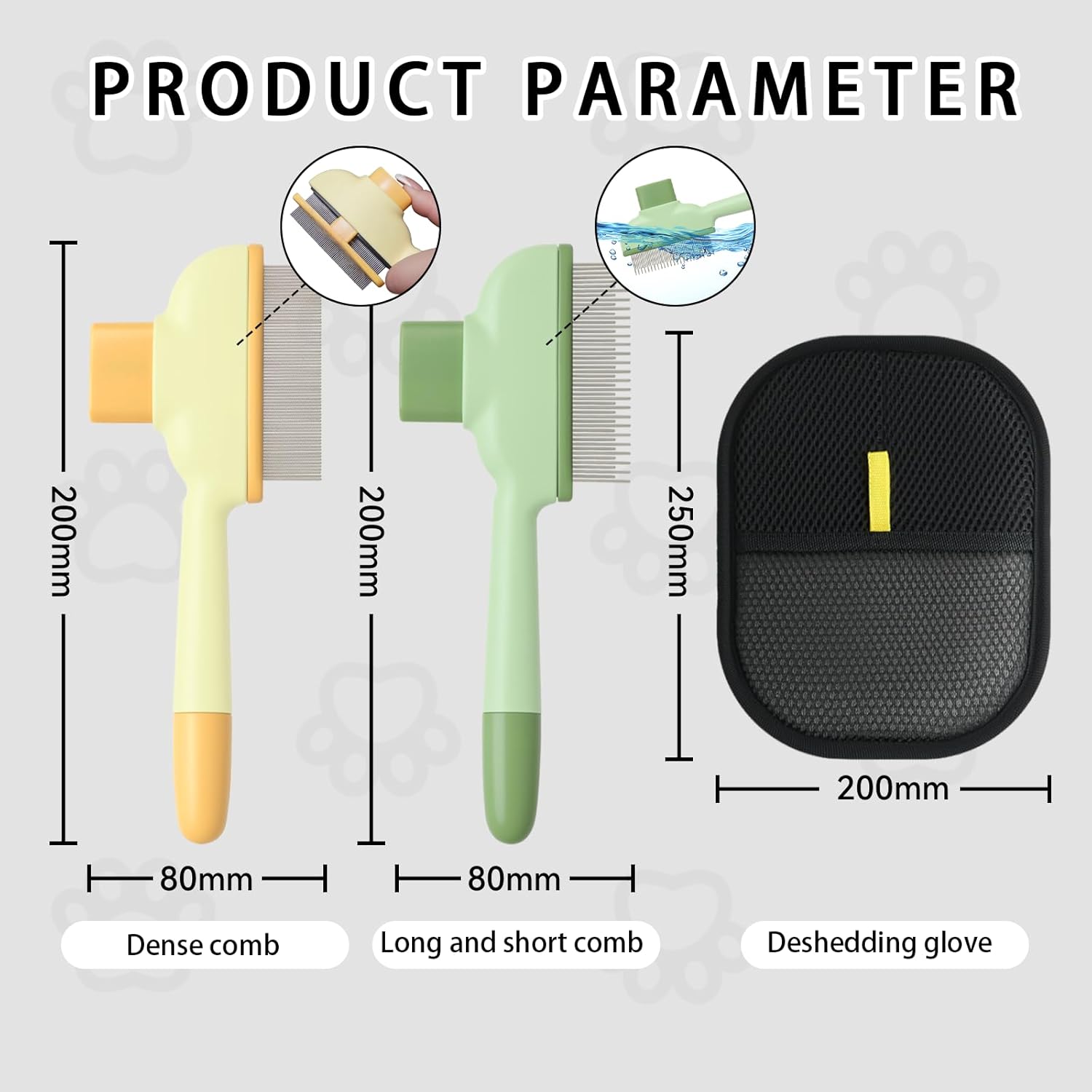 - 【Gentle Yet Effective】- Designed for sensitive skin, the soft bristles of the grooming comb and flexible pet hair removal gloves efficiently remove loose fur, tangles, and mats without causing discomfort, making it ideal for both long-haired and short-haired pets